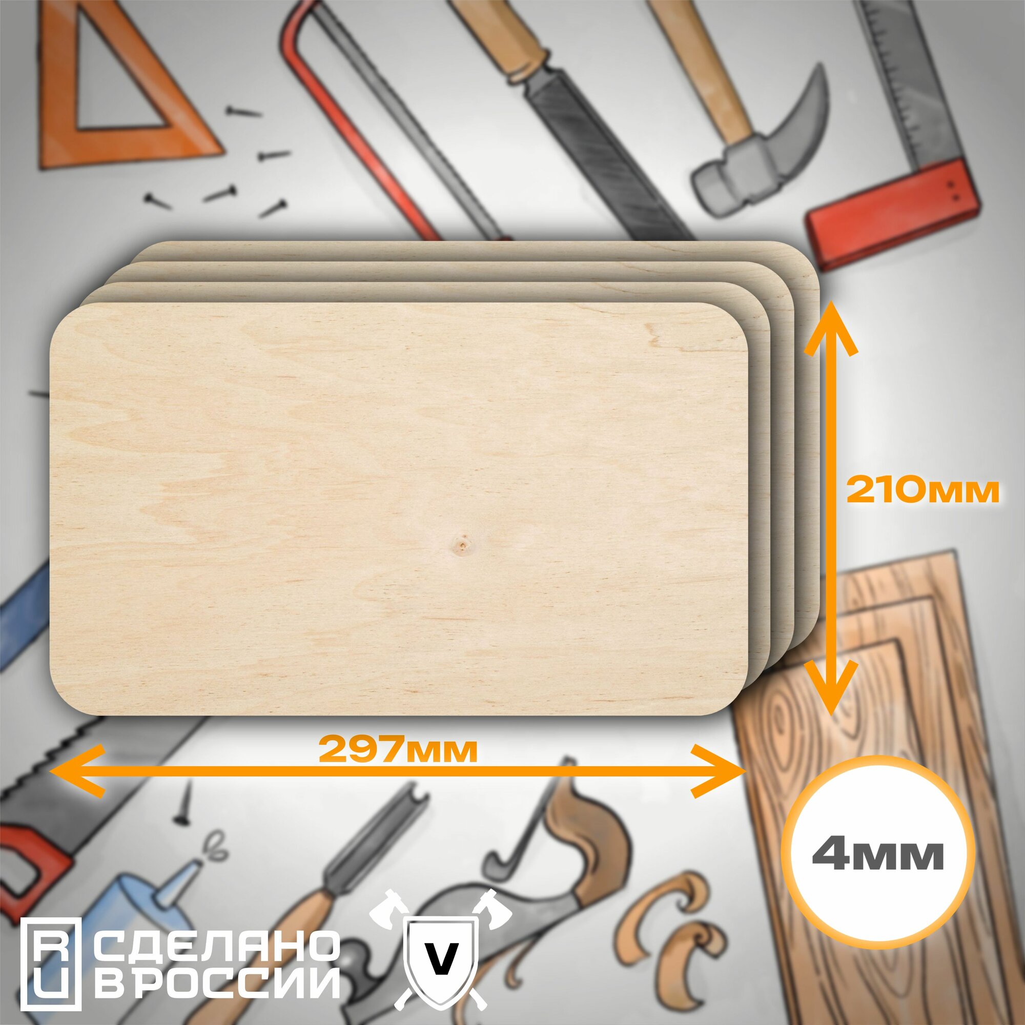 Фанера для творчества 5мм 3шт. Заготовки доски для выжигания и фигурной вырезки информация: