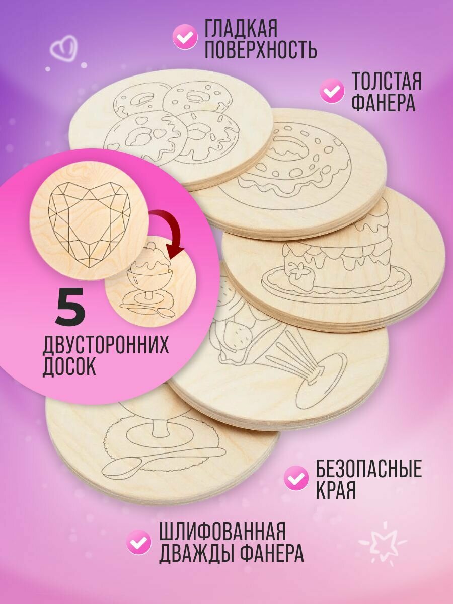 Набор деревянных досок из фанеры MEGA TOYS детский для выжигания по дереву с рисунком Для девочек для труда в школу информация: