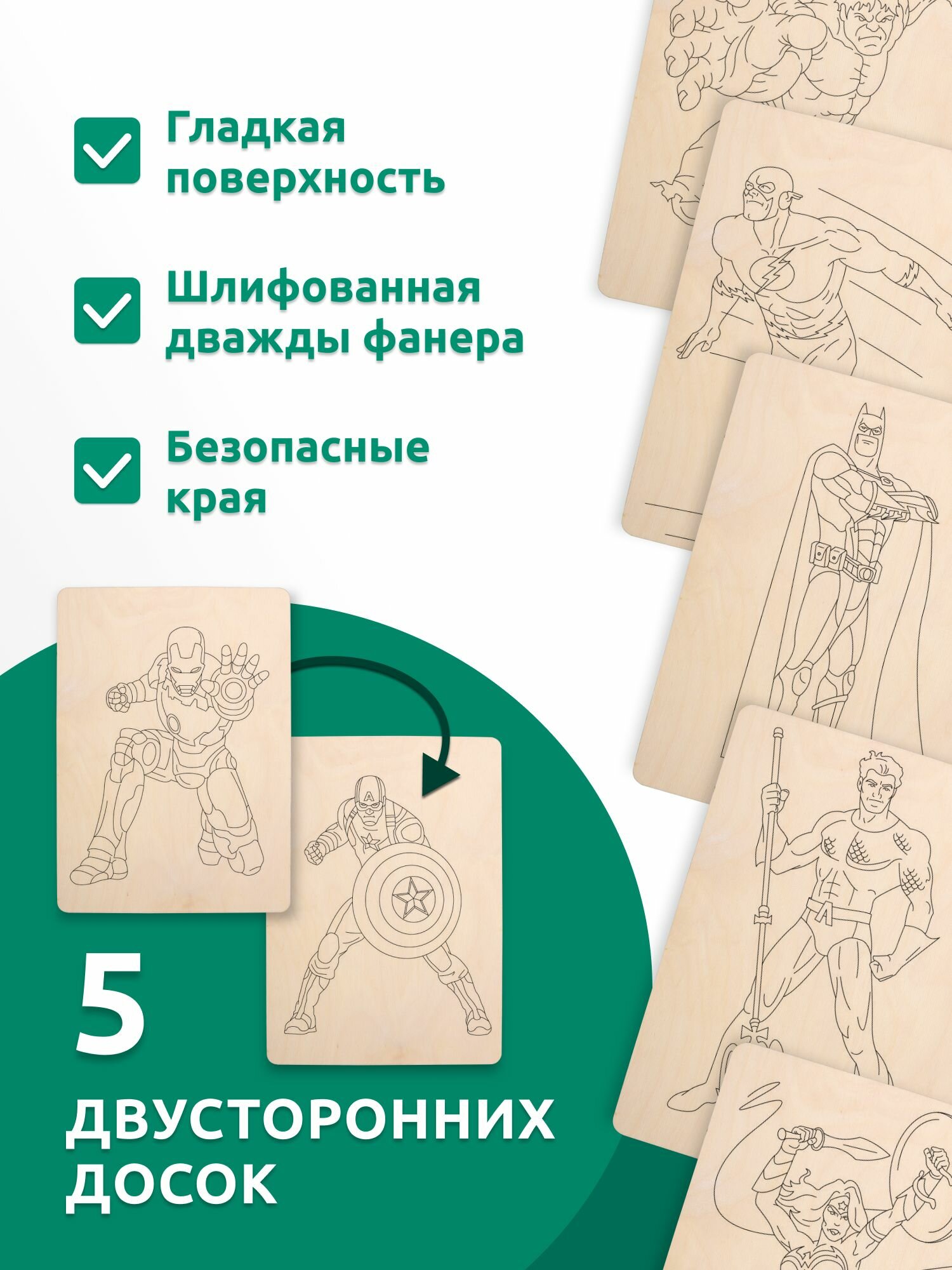 Набор деревянных досок А5 для выжигания по дереву MEGA TOYS детский из фанеры с рисунком Супергерои информация:
