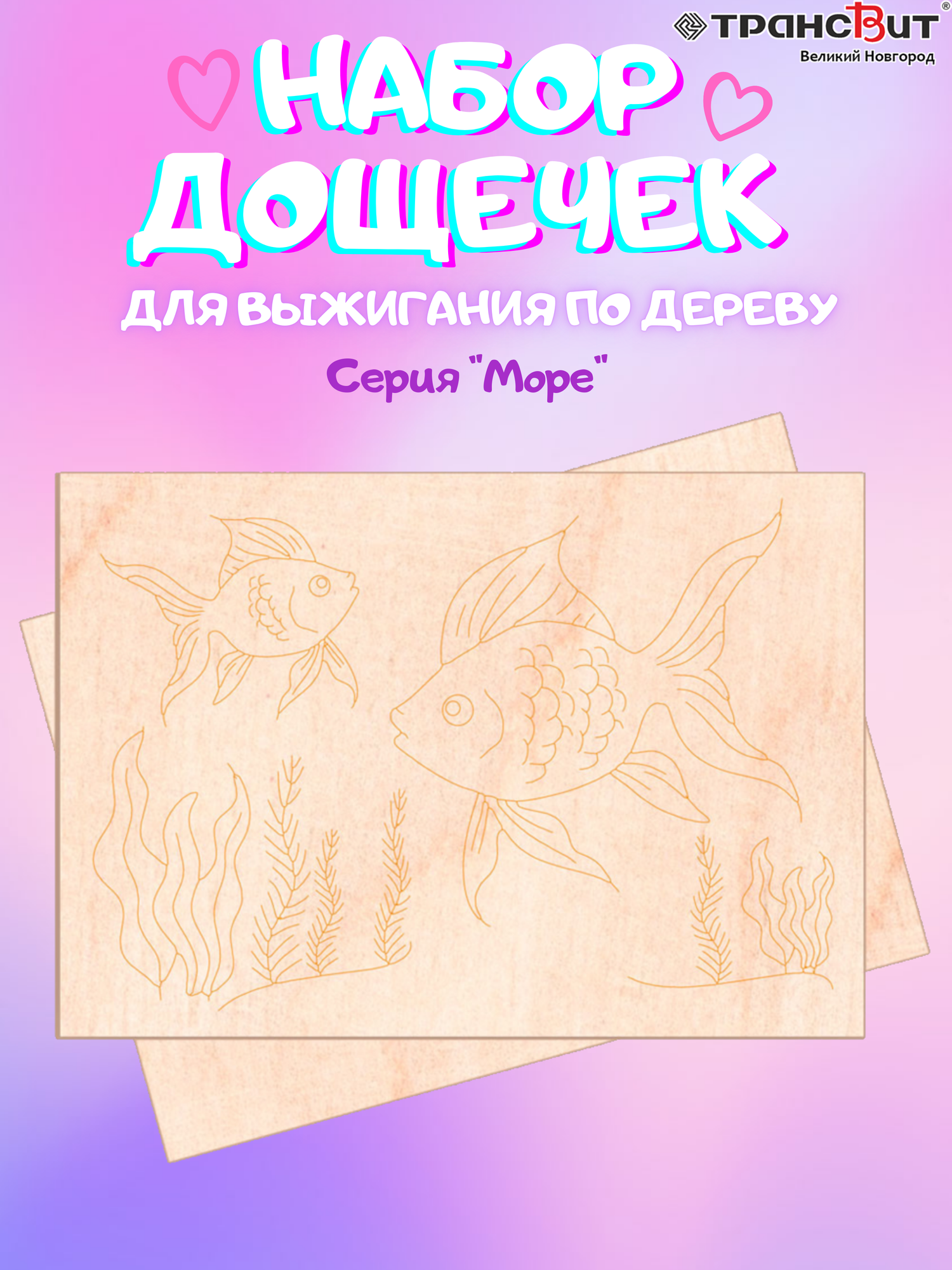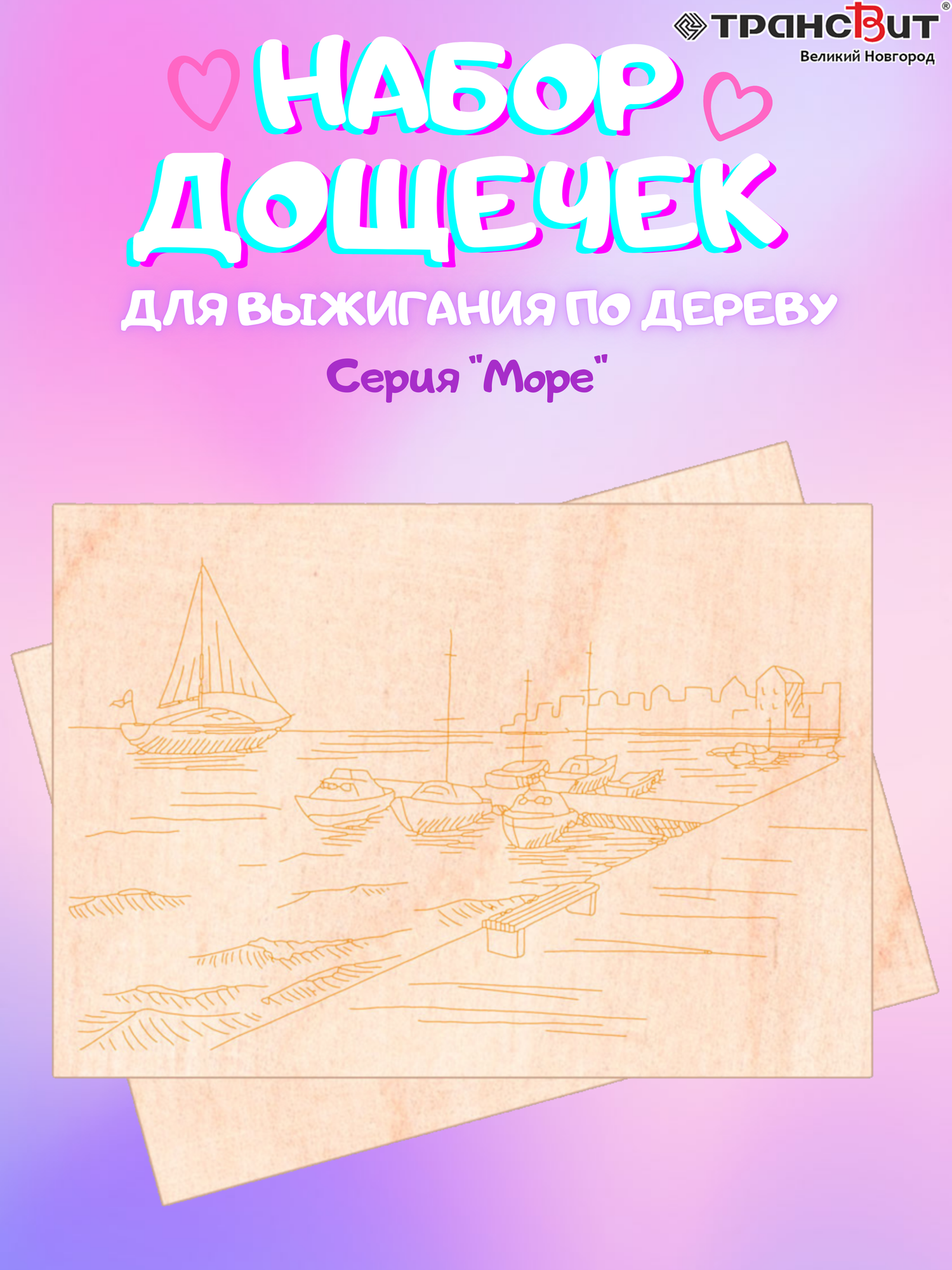 Набор досок для выжигания по дереву, 5 шт, серия "Море" информация: