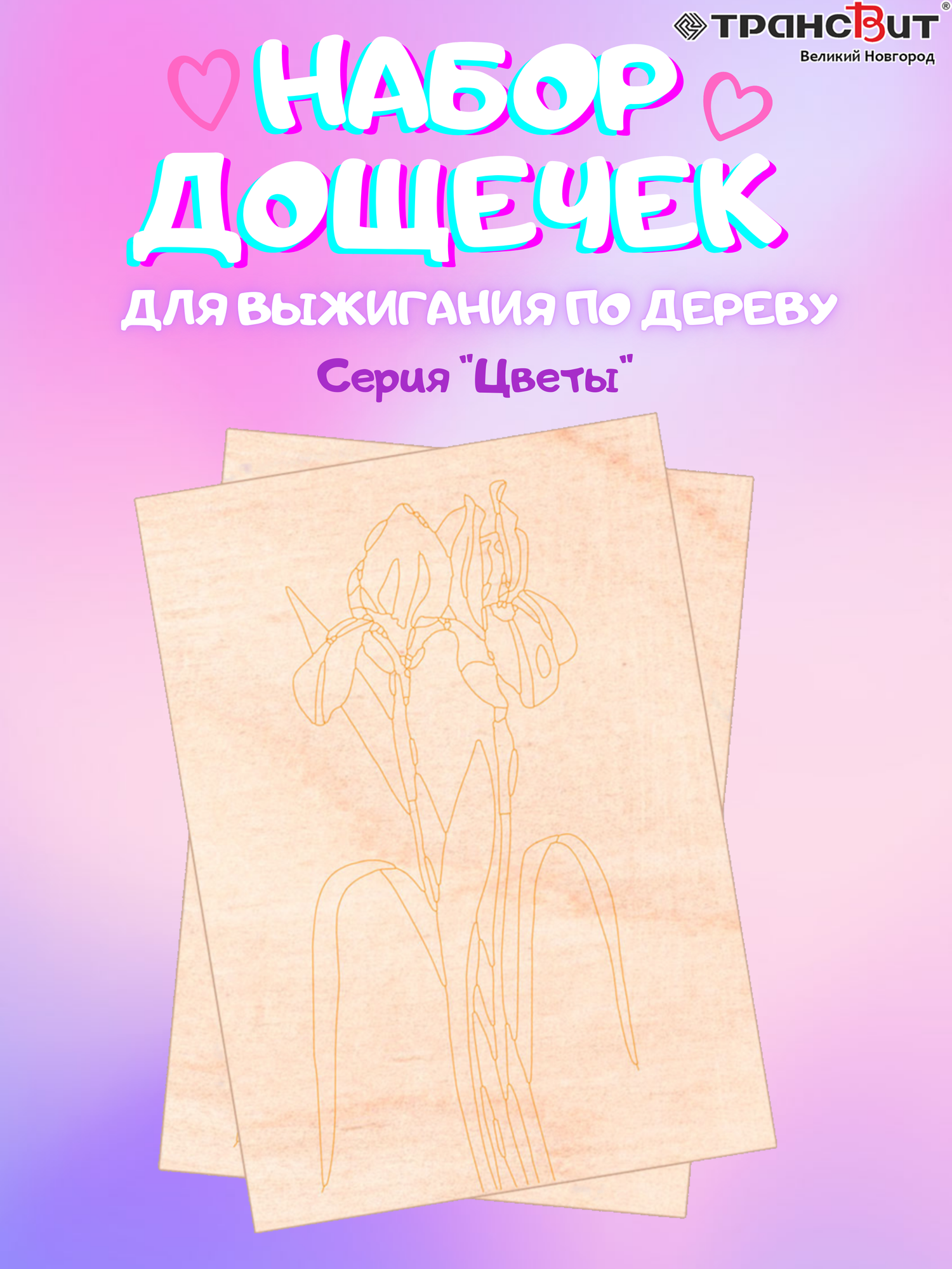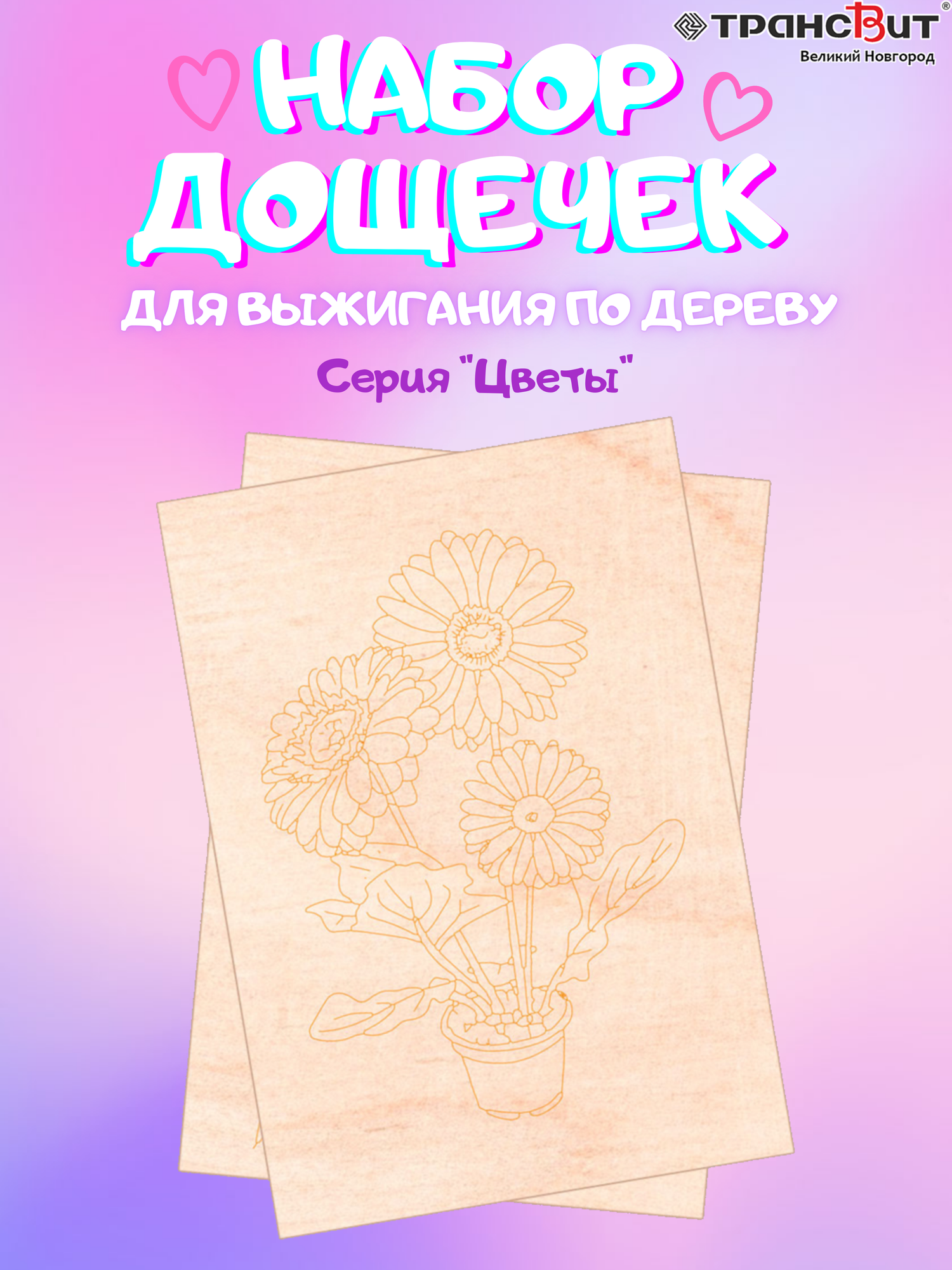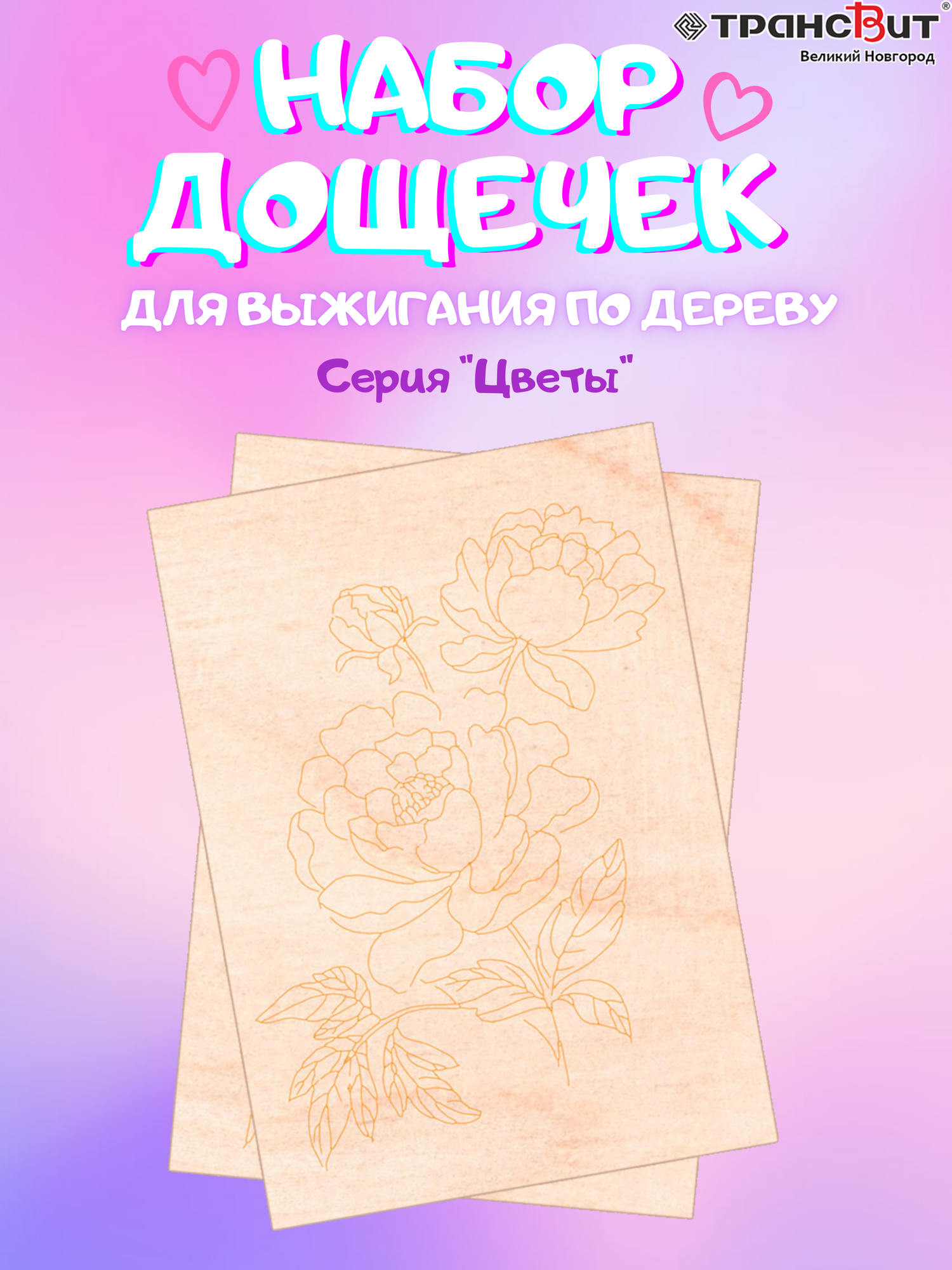 Набор досок для выжигания по дереву, 5 шт, серия "Цветы" информация: