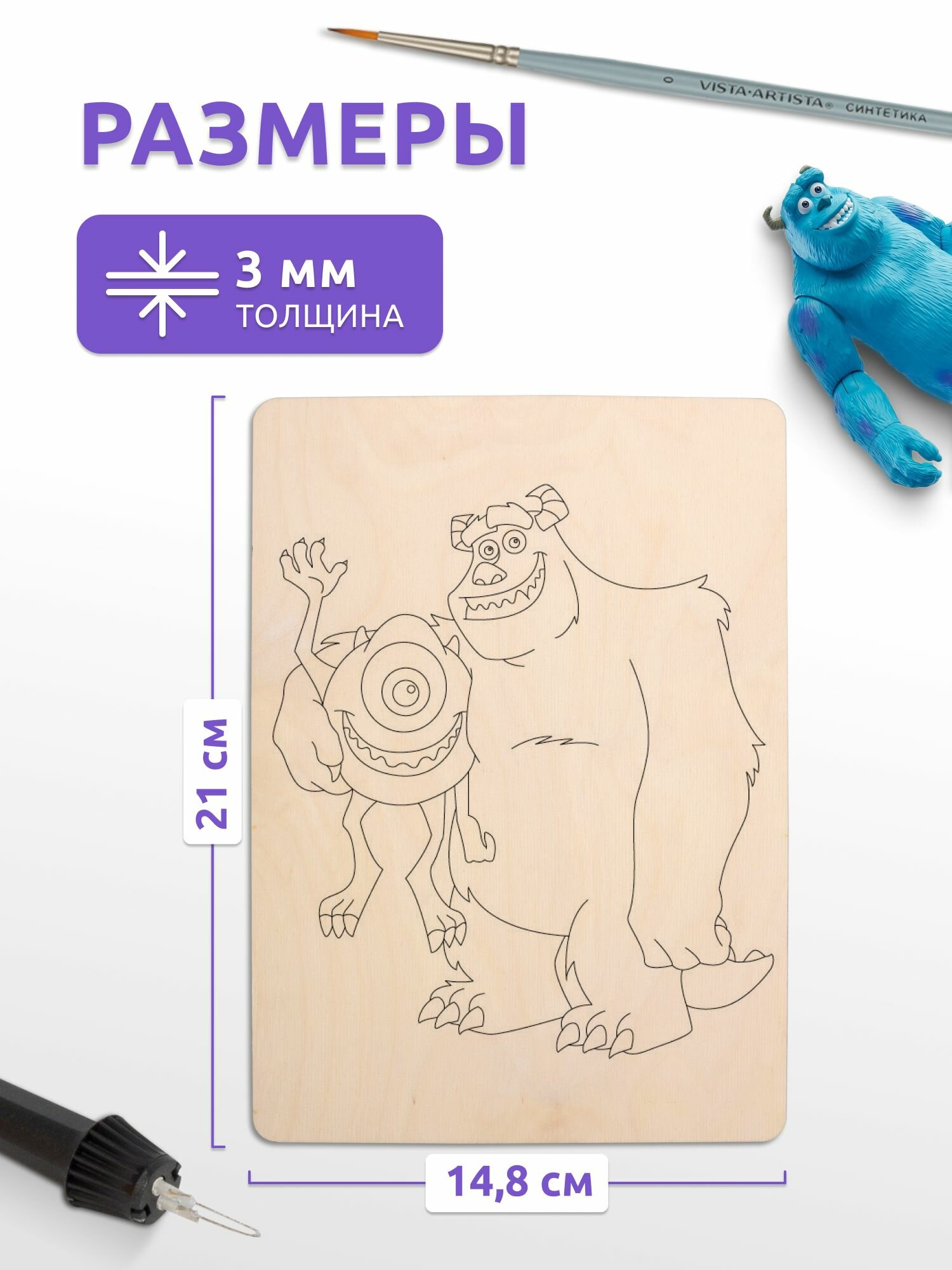 Отзывы на Набор деревянных досок А5 для выжигания по дереву MEGA TOYS детский из фанеры с рисунком Мультфильмы