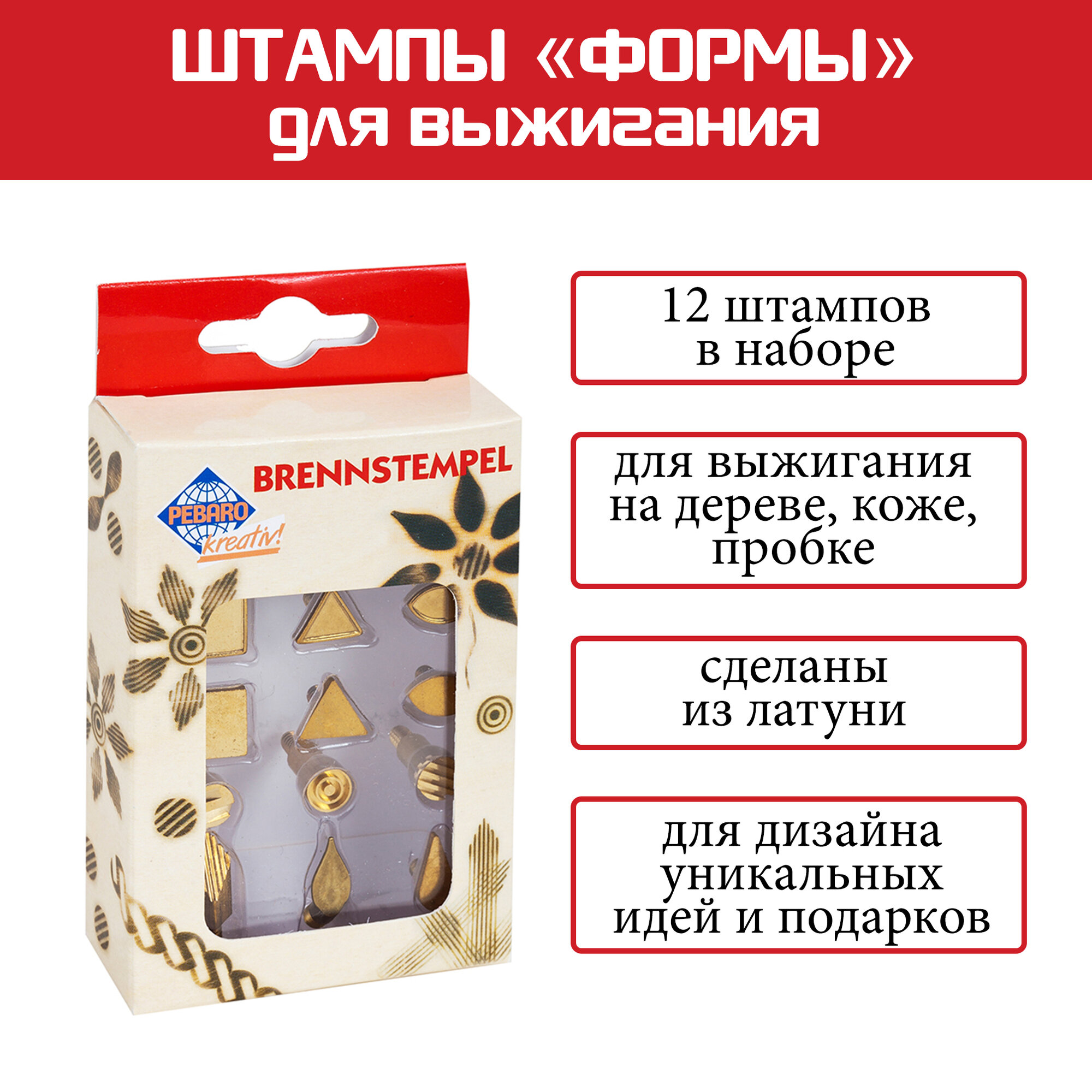 Набор штампов для выжигания Pebaro 20300, 12 насадок, латунь, в виде форм объектов информация: