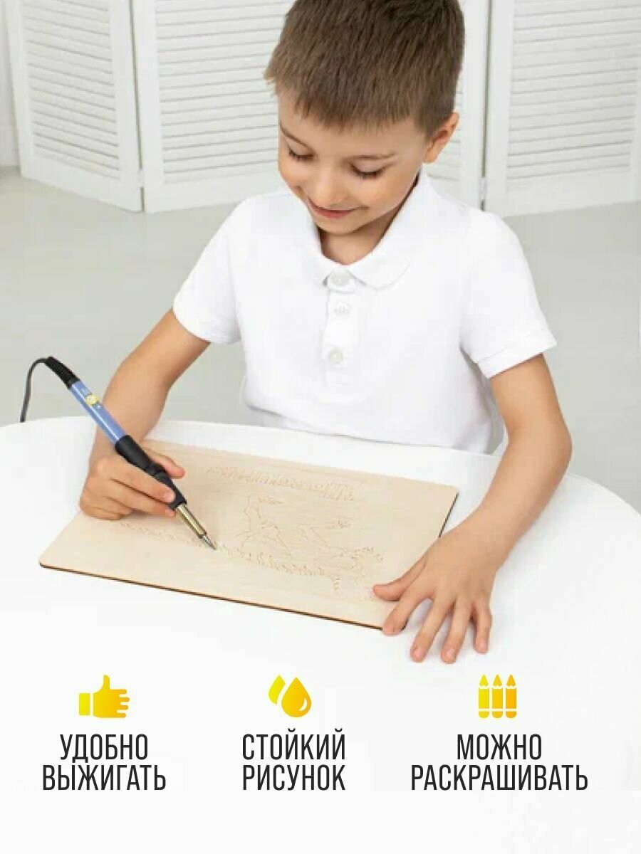 Набор деревянных досок из фанеры MEGA TOYS детский для выжигания по дереву с рисунком Динозавры / для мальчиков и девочек для труда в школу информация: