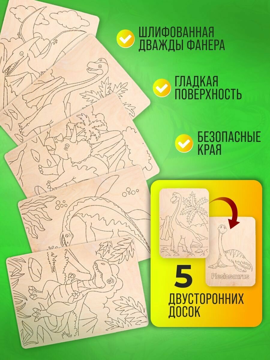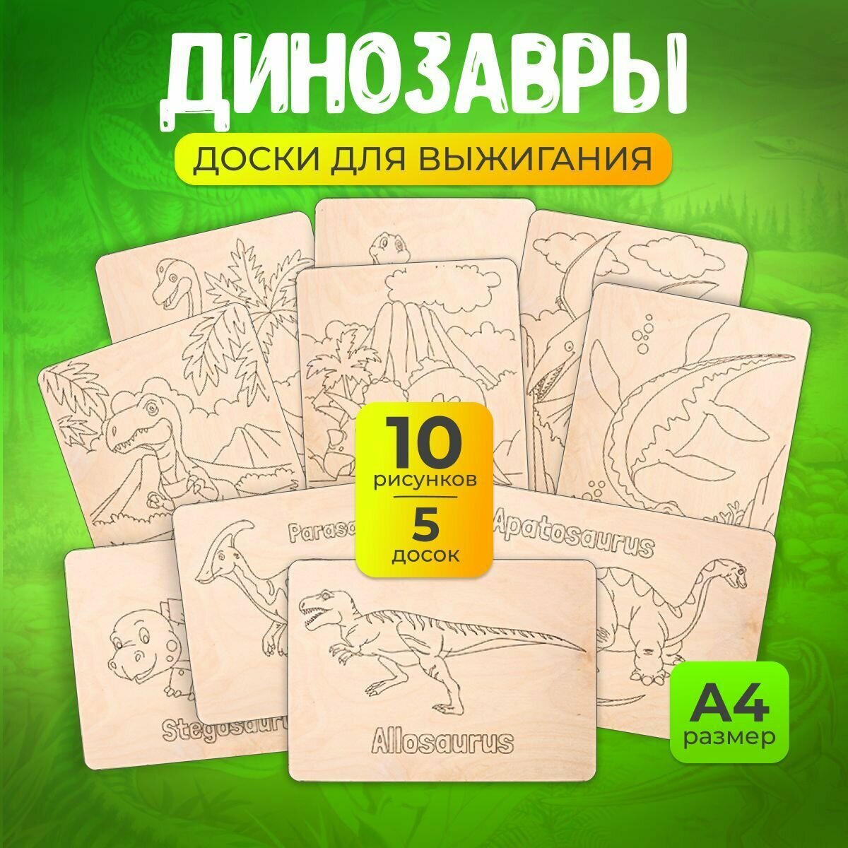 10 цен на Набор деревянных досок из фанеры MEGA TOYS детский для выжигания по дереву с рисунком Динозавры / для мальчиков и девочек для труда в школу