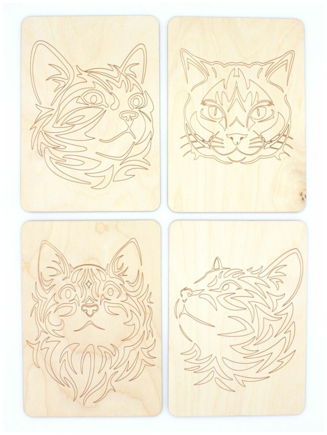 10 цен на Набор основ для выжигания по дереву, доска для рисования RiForm с рисунком "Кошки №2", формат А5, фанера 4мм