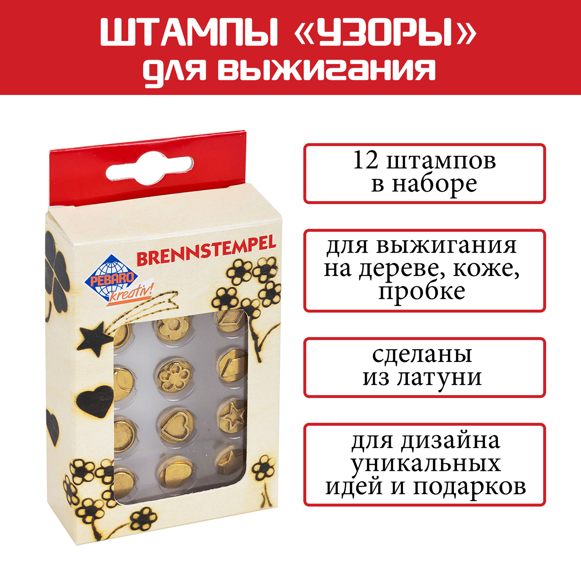 10 цен на Набор штампов Pebaro 20200, для выжигания, 12 шт, латунь, в виде узоров