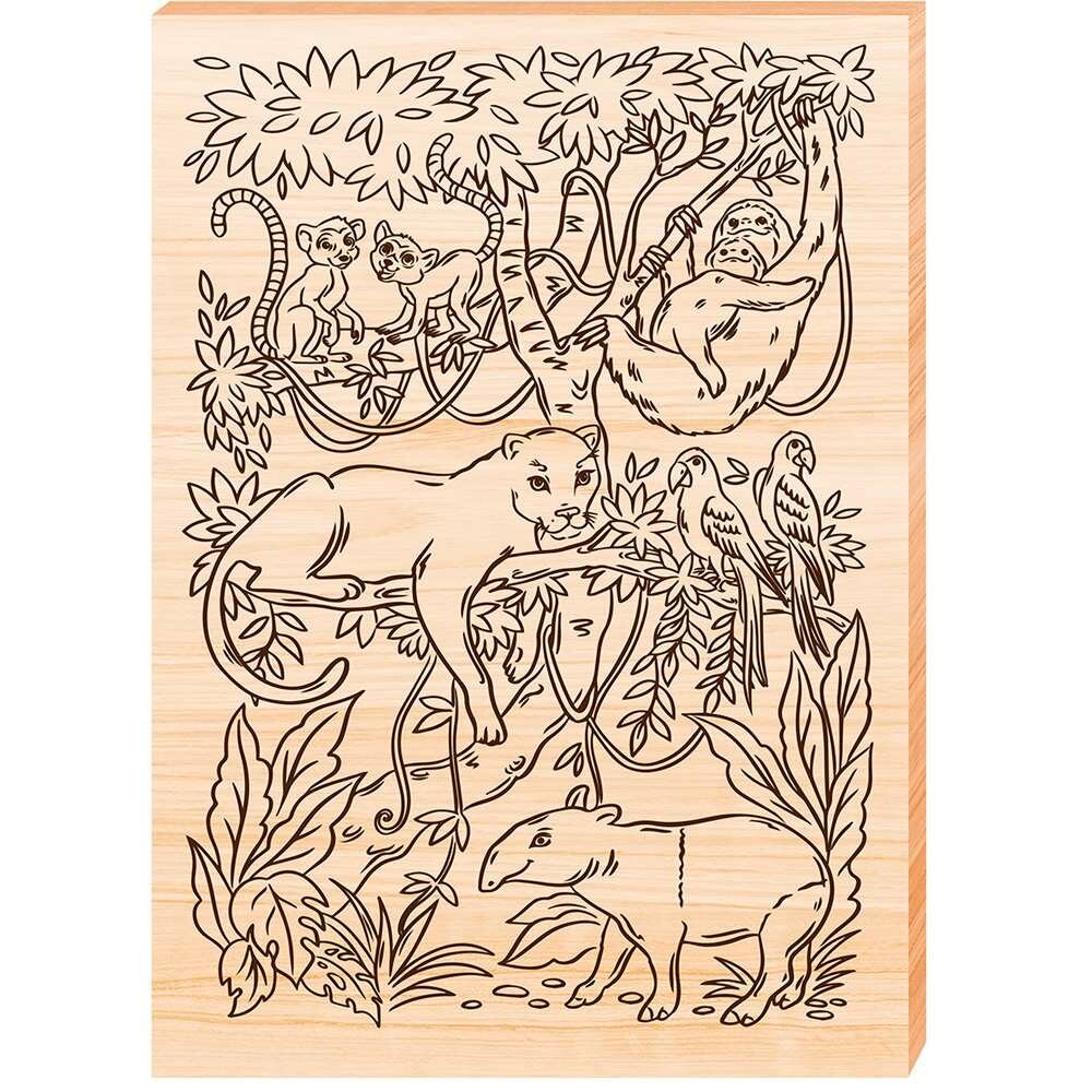 Набор для творчества Выжигание. Доска для выжигания 1 шт Животные джунглей А4 04953, 3 набора информация: