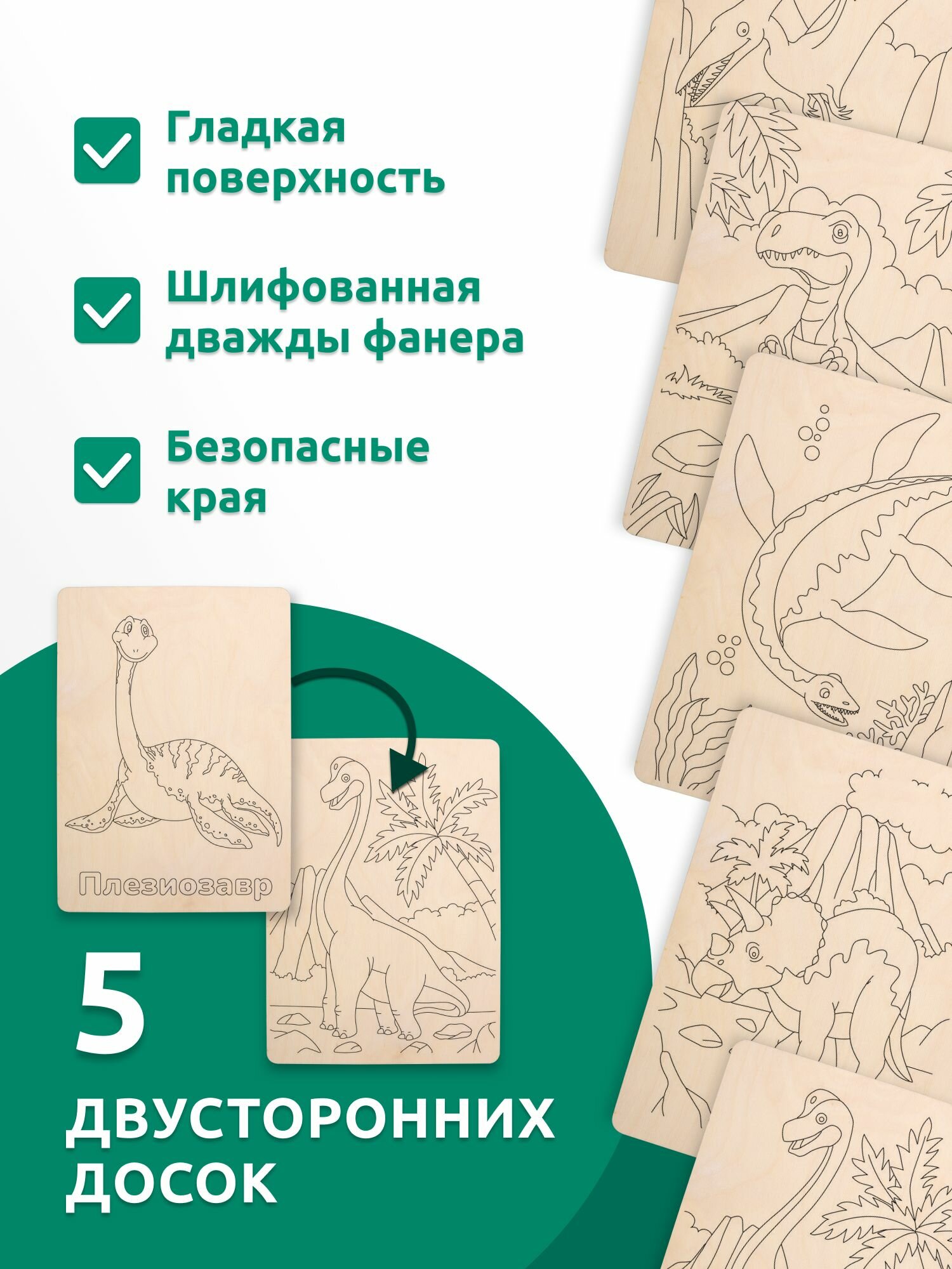 Набор деревянных досок А5 для выжигания по дереву MEGA TOYS детский из фанеры с рисунком Динозавры информация:
