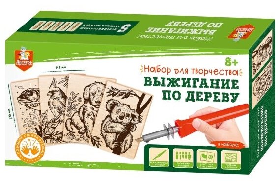 Набор для выжигания Десятое Королевство 04386 аппарат с насадками, доски 5 шт. информация: