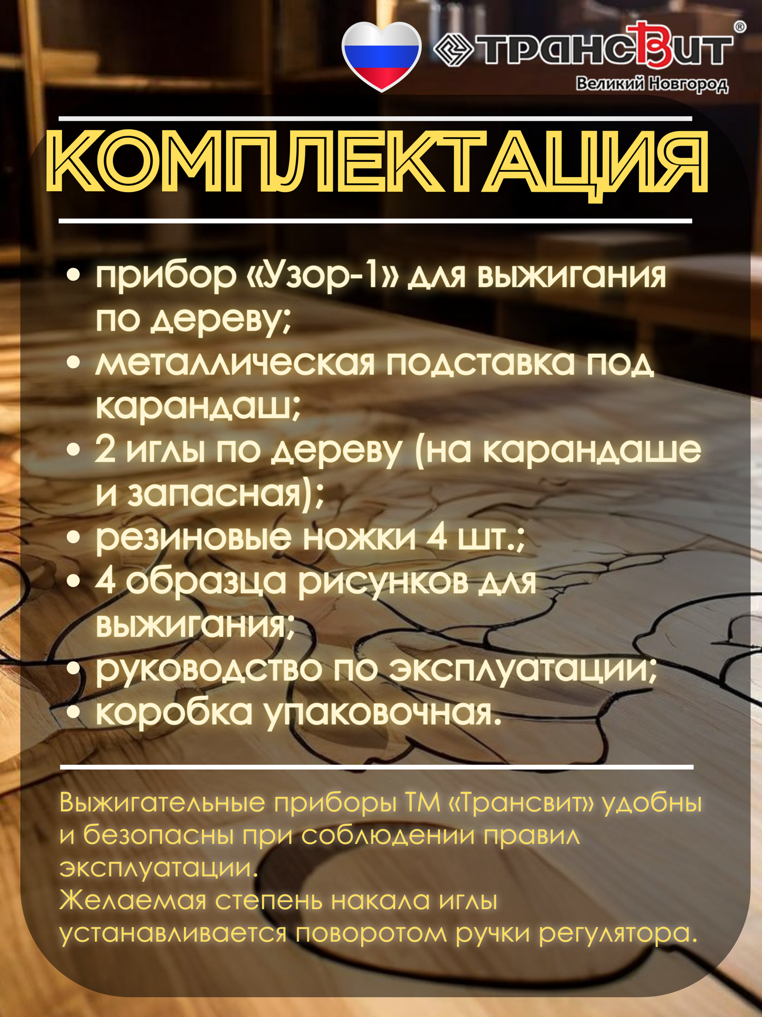 Выжигатель по дереву Узор-1, детский, прибор для выжигания, Трансвит информация: