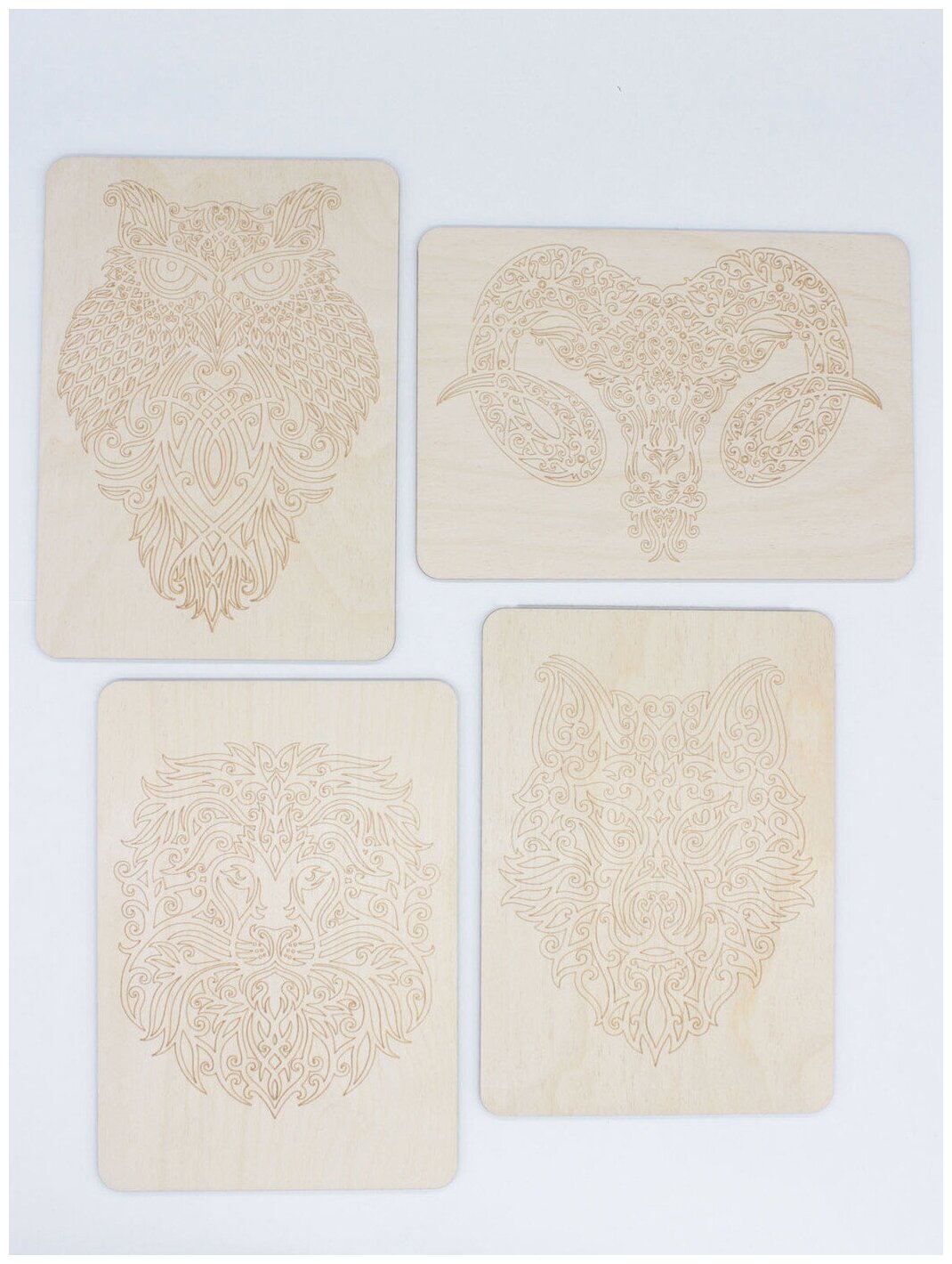 10 цен на Набор основ для выжигания по дереву, доска для рисования RiForm с рисунком "Дикие животные №1", формат А5, фанера 4мм