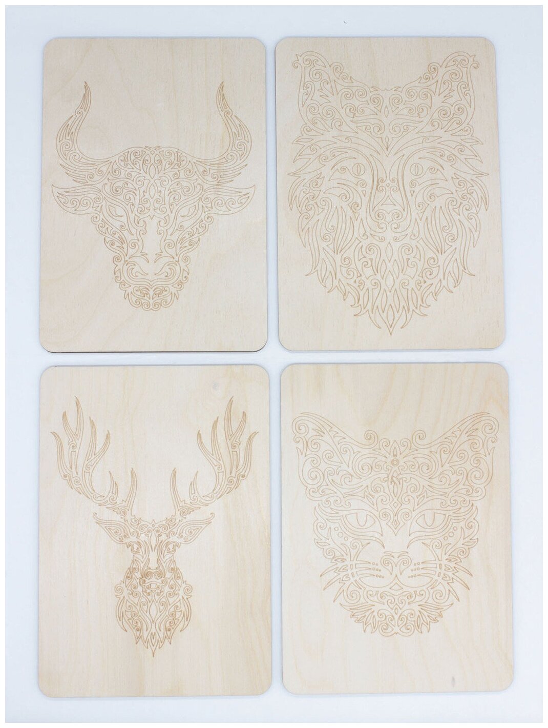 10 цен на Набор основ для выжигания по дереву, доска для рисования RiForm с рисунком "Дикие животные №2", формат А5, фанера 4мм
