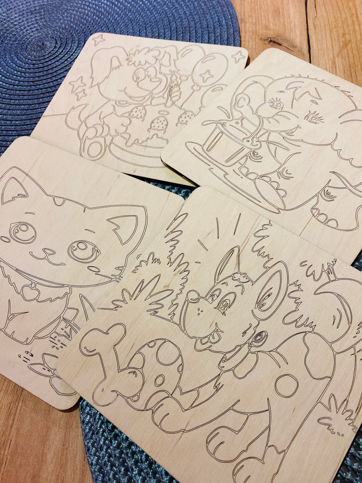 Отзывы на Набор досок (заготовок) Слонёнок, котёнок, собачка для выжигания и рисования по дереву, размер 15*15 см