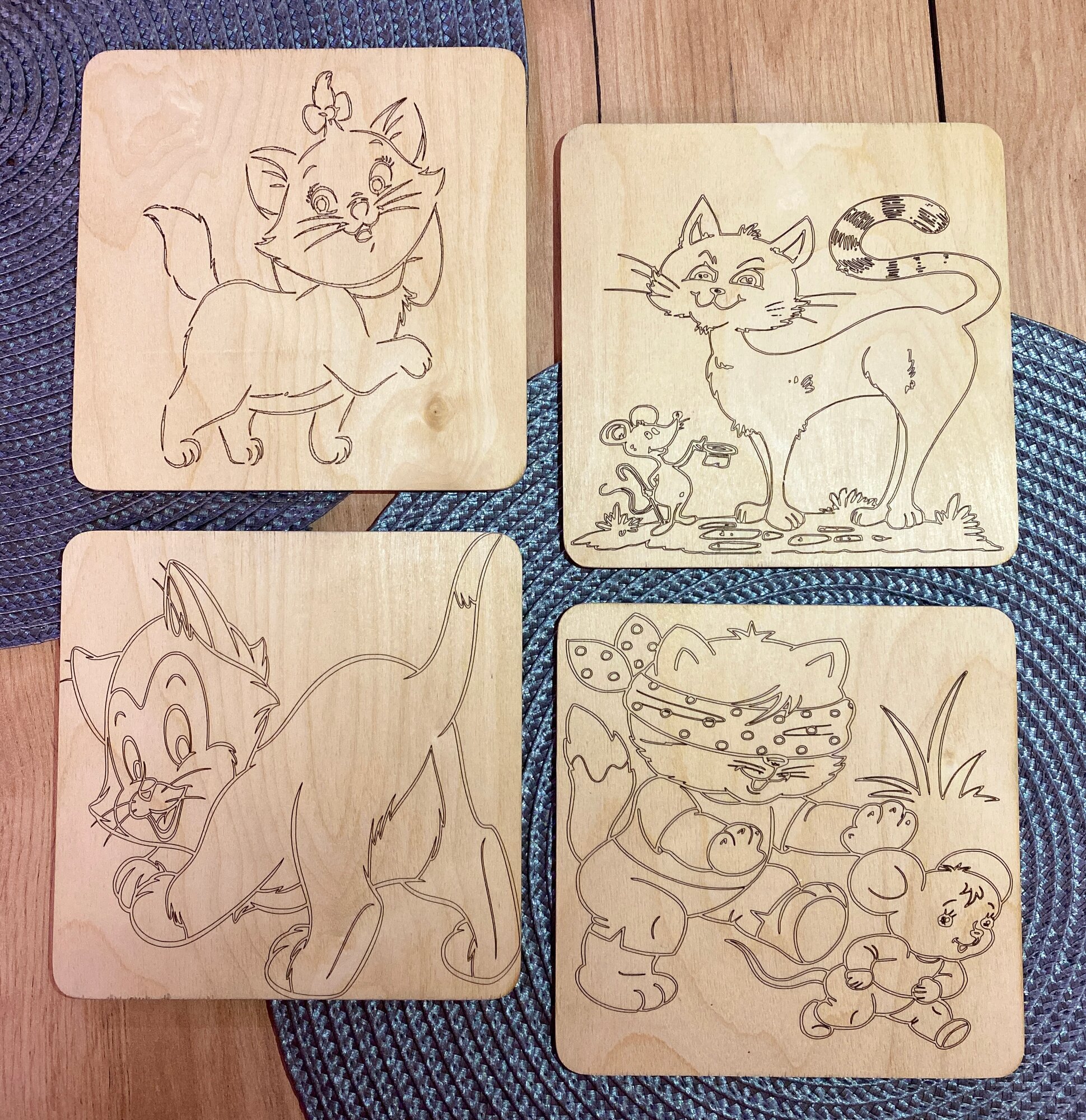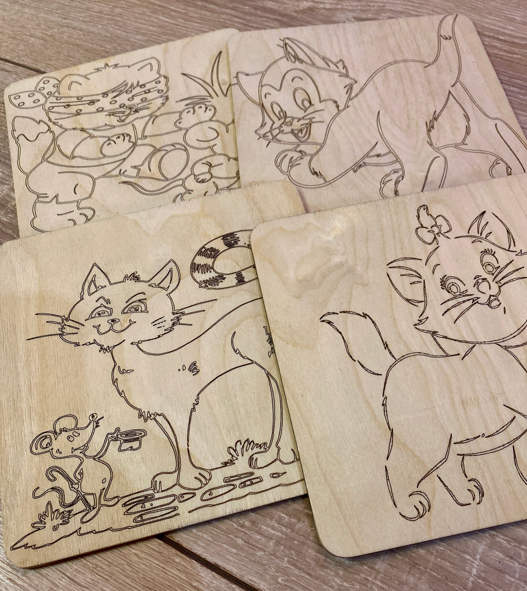 Отзывы на Набор досок (заготовок) для выжигания и рисования по дереву "Кошка", размер 15*15 см