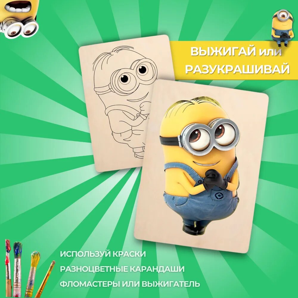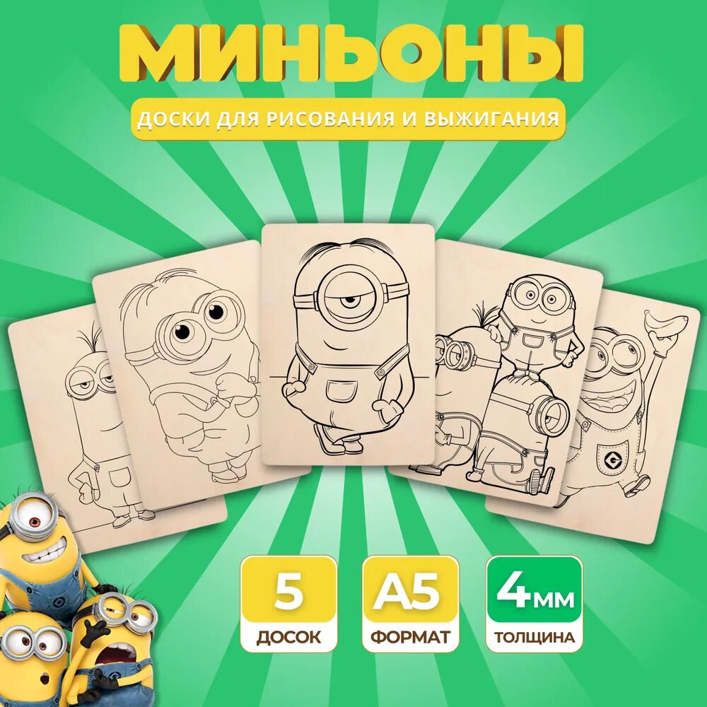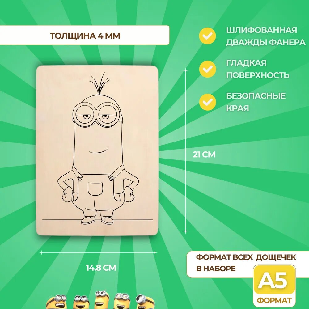 Набор деревянных досок А5 для рисования и выжигания по дереву детский из фанеры с рисунком Миньоны информация: