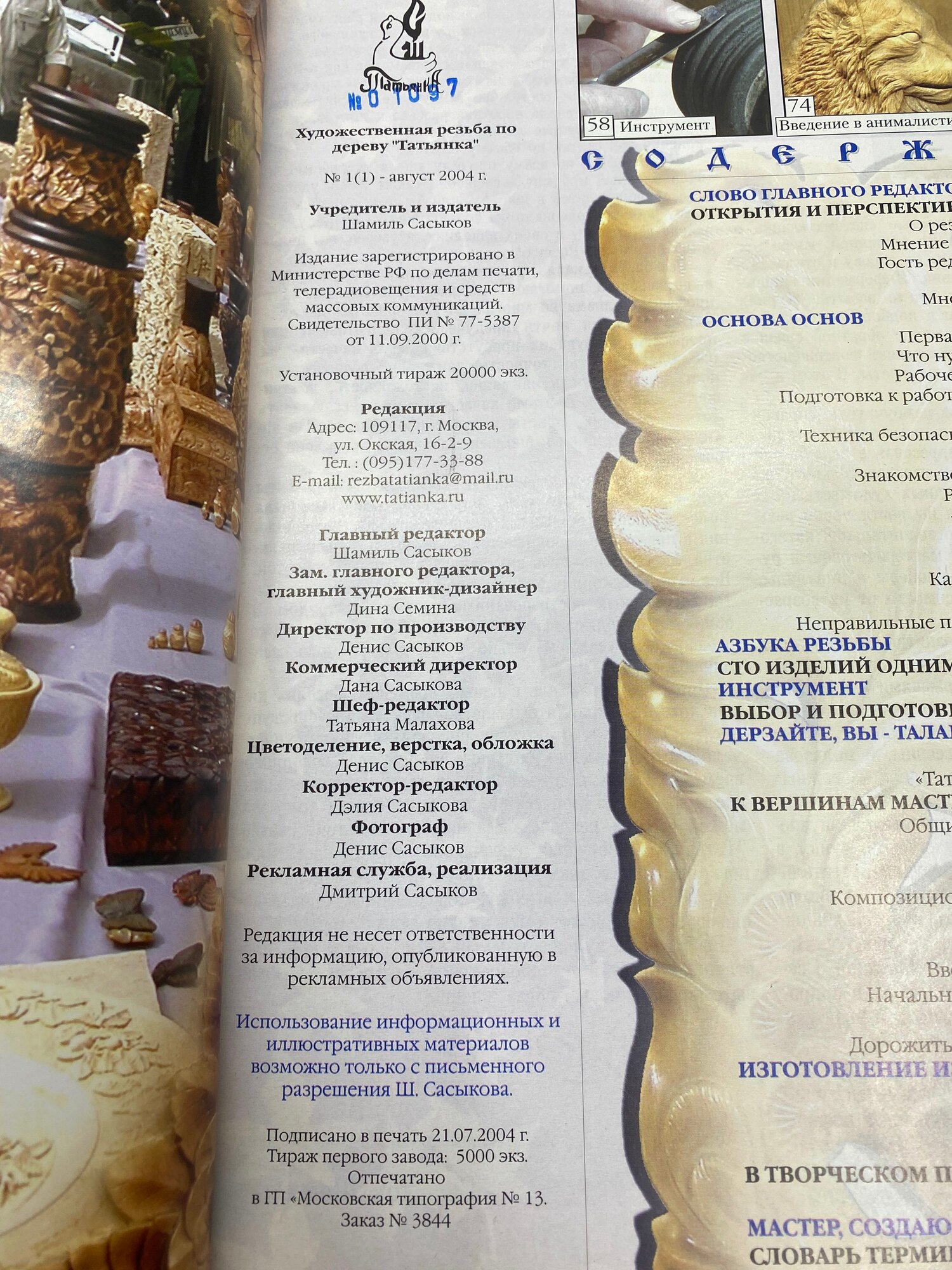 Художественная резьба по дереву Татьянка № 1 ИП Сасыков Д. Ш 2004г информация: