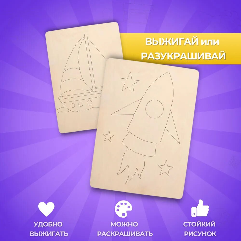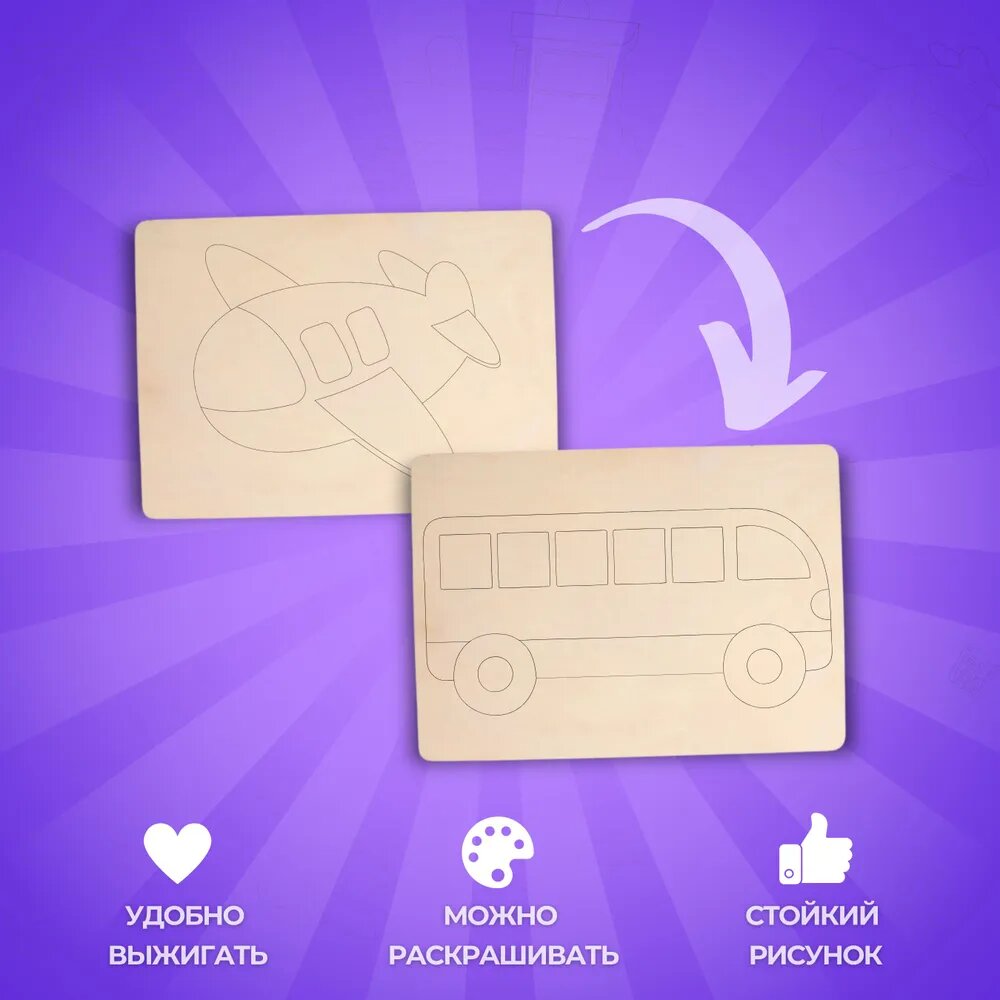 Отзывы на Набор деревянных досок А5 для рисования и выжигания по дереву детский из фанеры с рисунком Транспорт