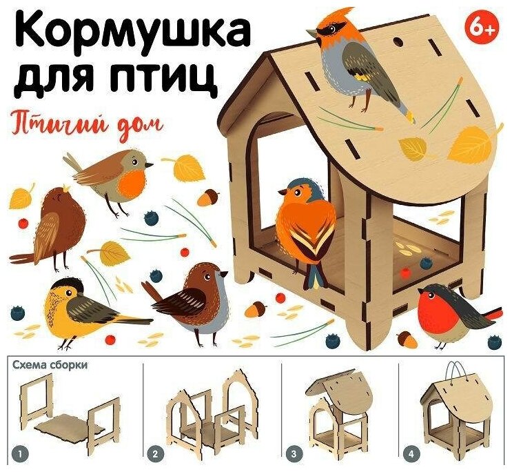 Отзывы на Кормушка для птиц "Зверушка" (коробка, кисточка + краски), в к 17,5x20,5x3,5 см