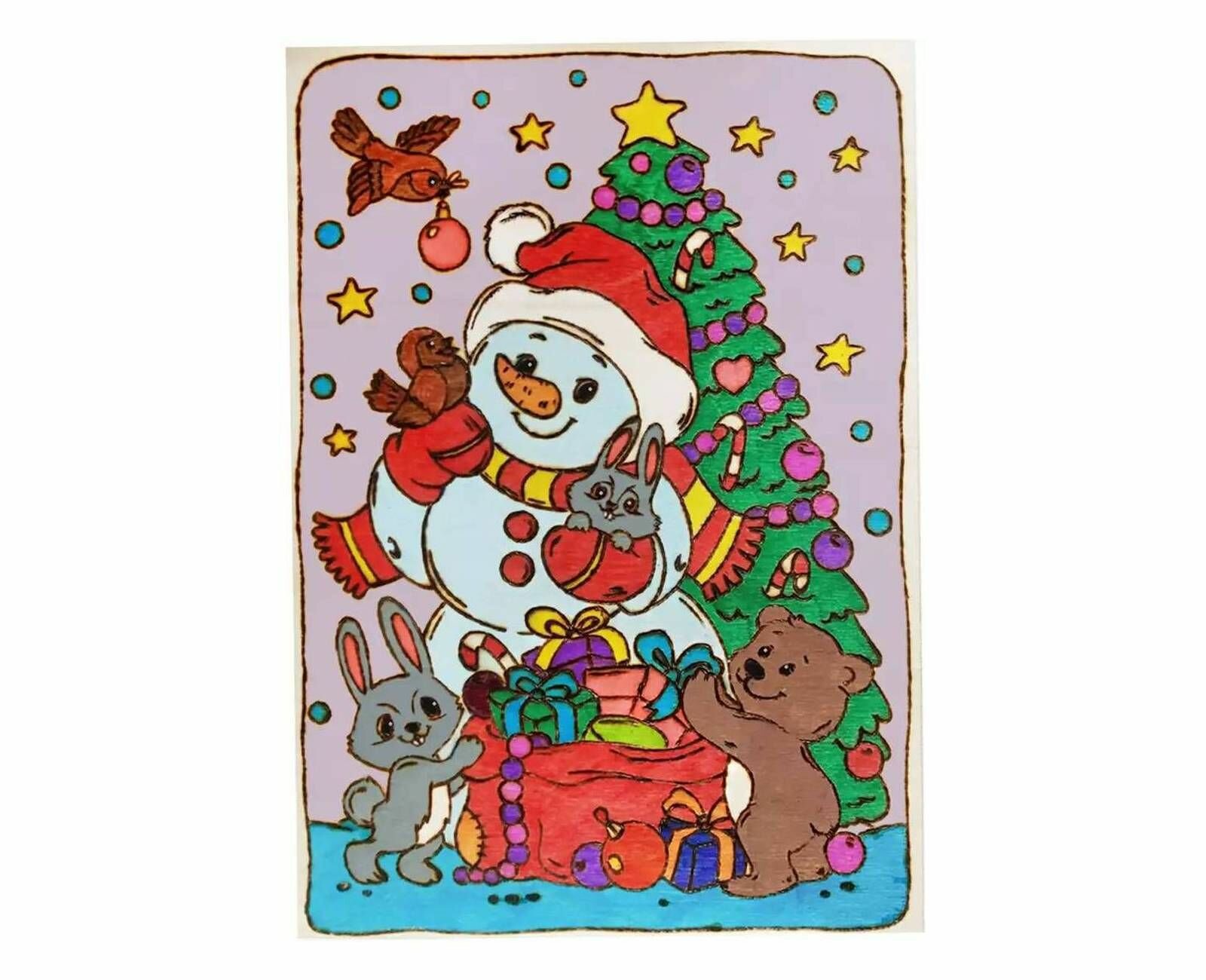 Доска для росписи и выжигания Десятое королевство - Снеговик с подарком, 1 шт информация: