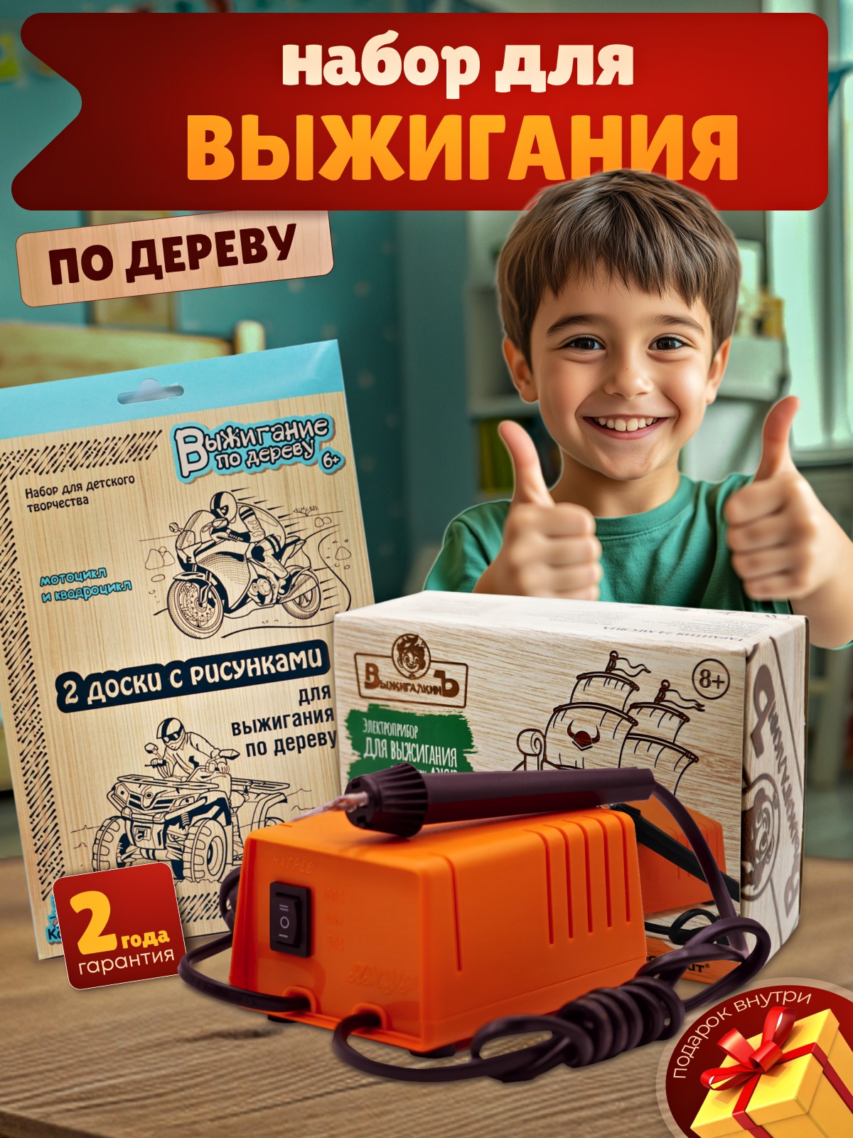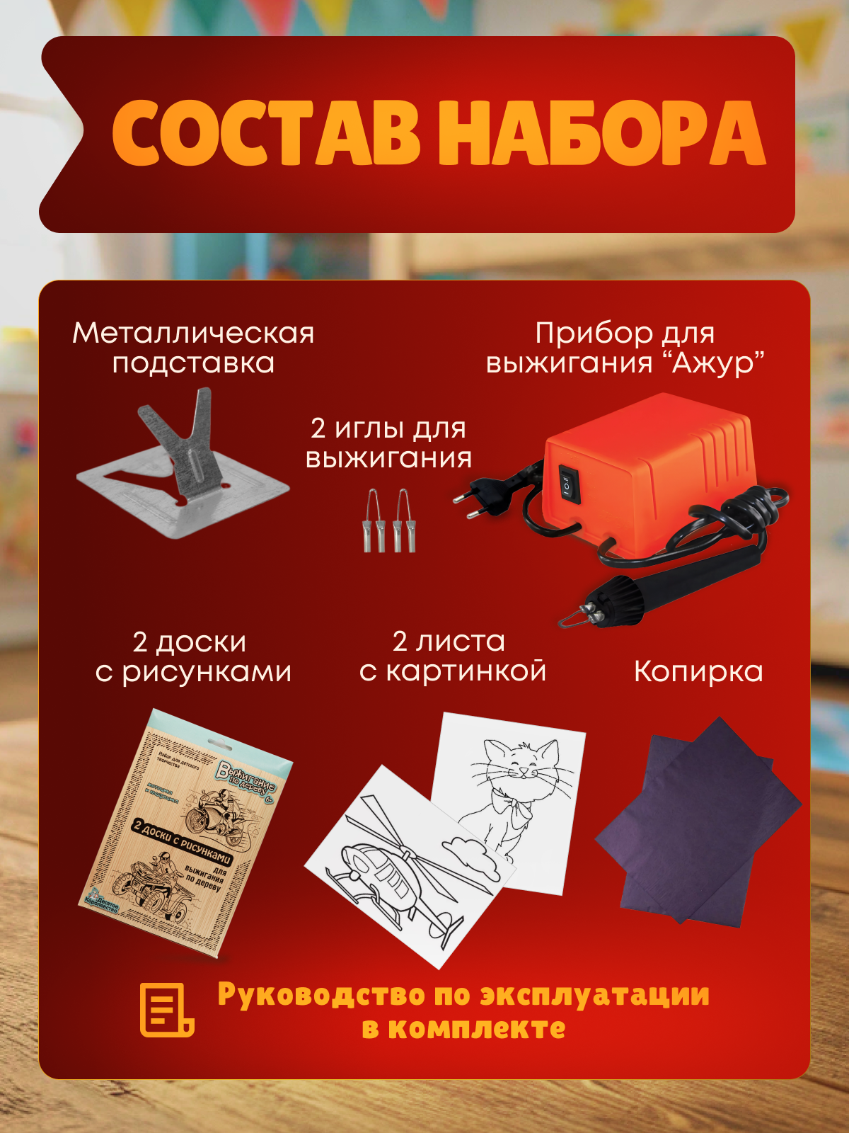 Набор для выжигания по дереву детский для творчества и рукоделия с выжигателем и дощечками информация: