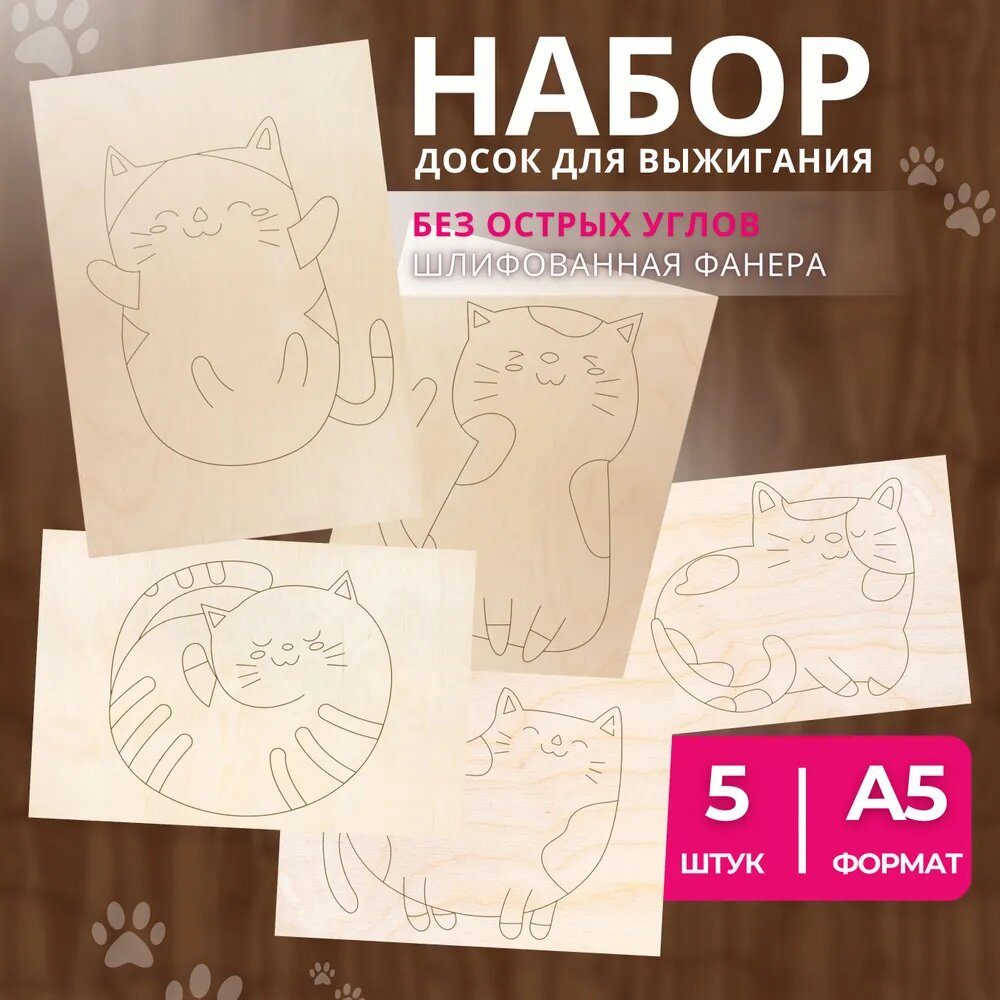 10 цен на Набор деревянных досок А5 для рисования и выжигания по дереву детский из фанеры с рисунком Коты