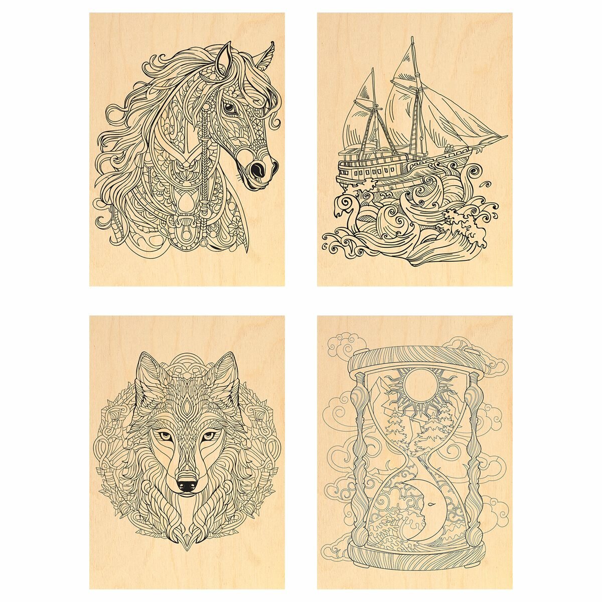 10 цен на Набор досок для выжигания по дереву Три Совы "Антистресс", 4шт, 15x21см, пакет с европодв (НВ_56778), 10 уп.