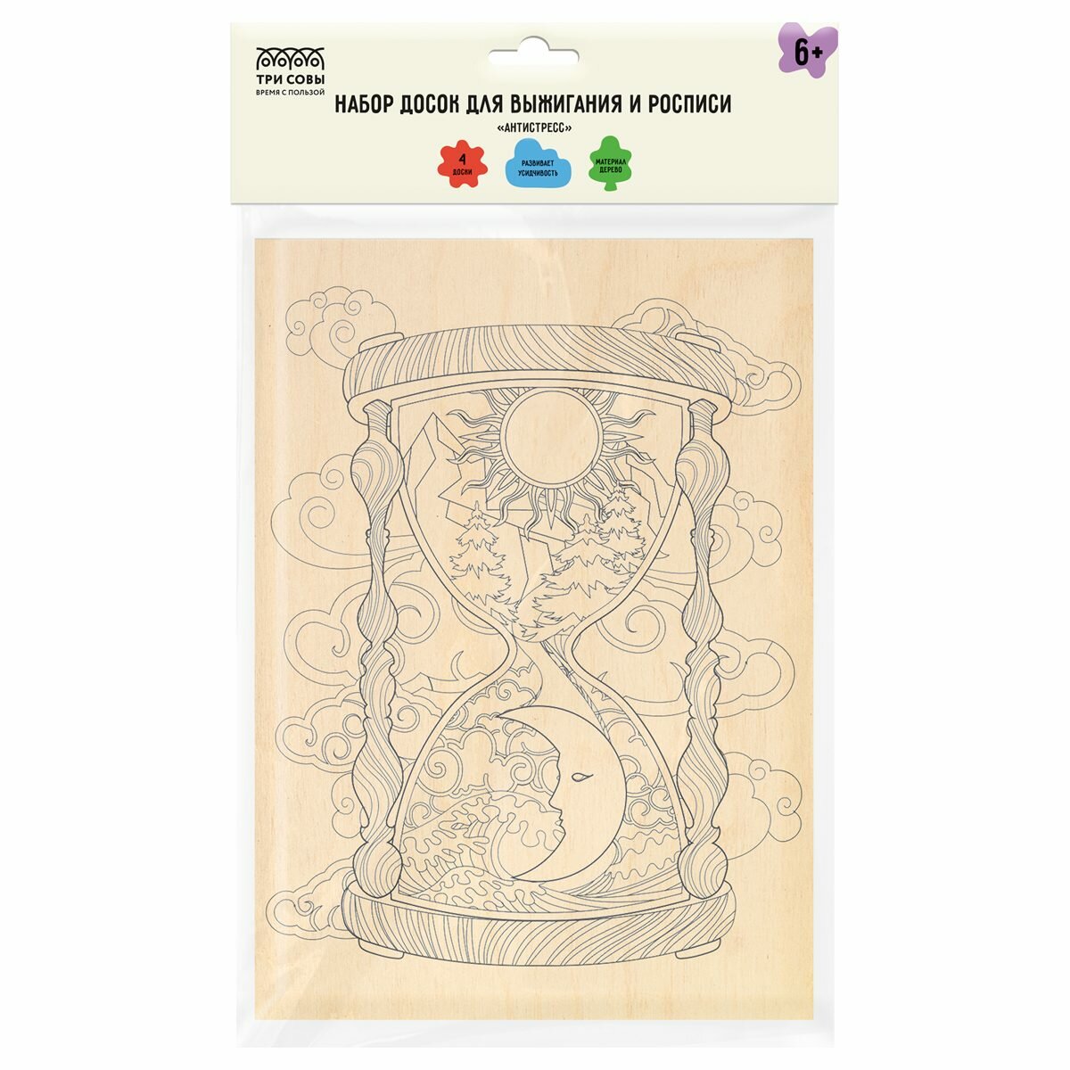 Набор досок для выжигания по дереву Три Совы "Антистресс", 4шт, 15x21см, пакет с европодв (НВ_56778), 10 уп. информация: