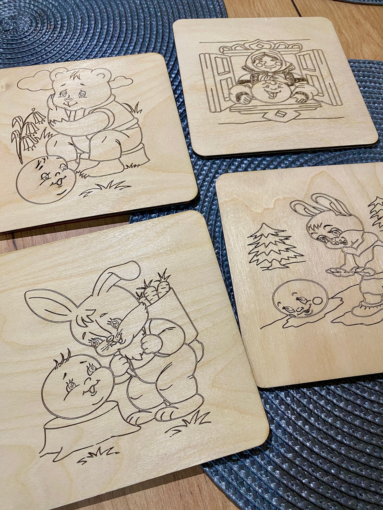 4шт Заготовки деревянные для выжигания "Сказочные мотивы",