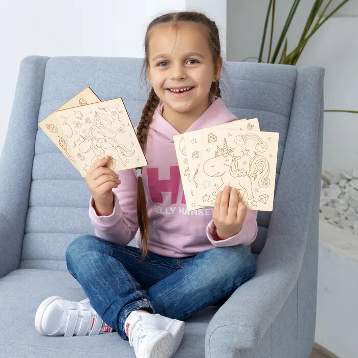 Отзывы на Набор досок для выжигания Раскрась и подари Единороги 15х15 см 5 шт.