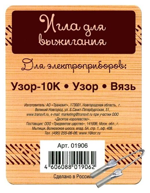 Игла сменная для выжигания по дереву для электроприборов: Узор-10К, Узор, Вязь информация: