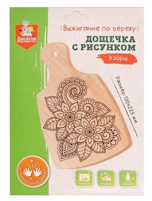 Отзывы на Разделочная доска для выжигания "Узоры", деревянная заготовка для детского творчества, картинка-трафарет с нанесенным рисунком, 130x225 мм