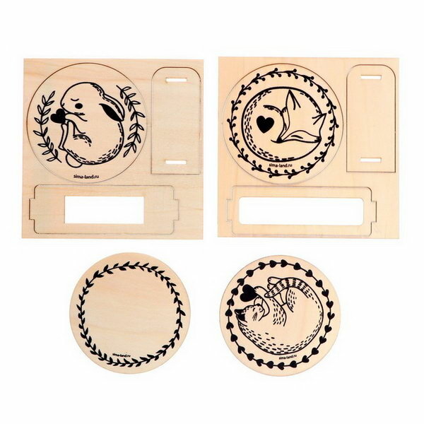 4шт Заготовки деревянные для выжигания "Сказочные мотивы",