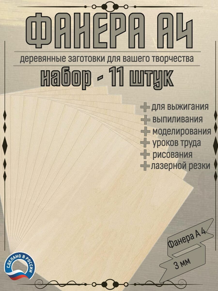 10 цен на Заготовки доски для выжигания по дереву, фанера А4 11 шт для творчества