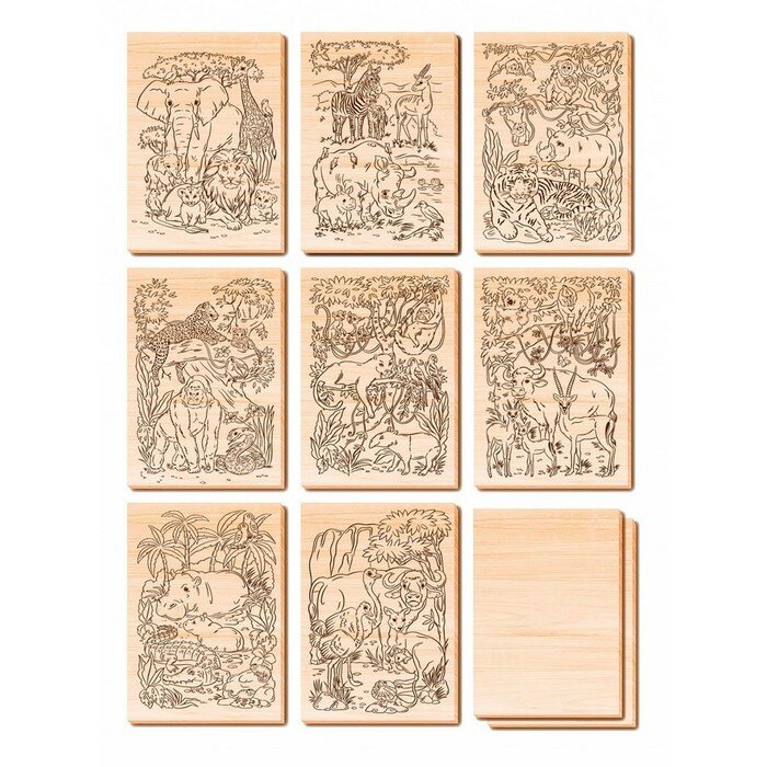 Отзывы на Набор для творчества Выжигание. Набор досок для выжигания и росписи Звериное царство А5, 10 шт 04957