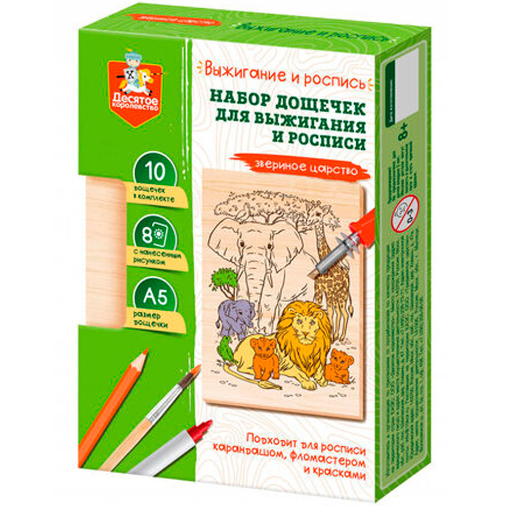 Набор для творчества Выжигание. Набор досок для выжигания и росписи Звериное царство А5, 10 шт 04957 информация: