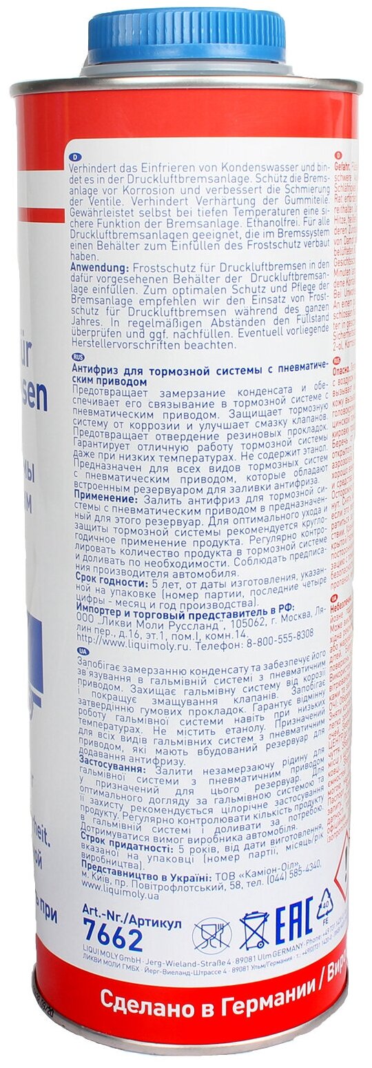 LIQUI MOLY антифриз для тормозной системы С пневматическим приводом FROSTSCHUTZ FUR DRUCKLUFTBREMSEN 1Л 7662 информация: