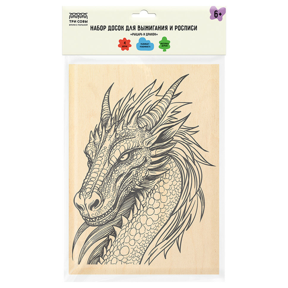 Набор досок для выжигания и росписи по дереву ТРИ совы "Рыцарь и дракон", 4шт, 15*21см, пакет с европодвесом, 363713 информация: