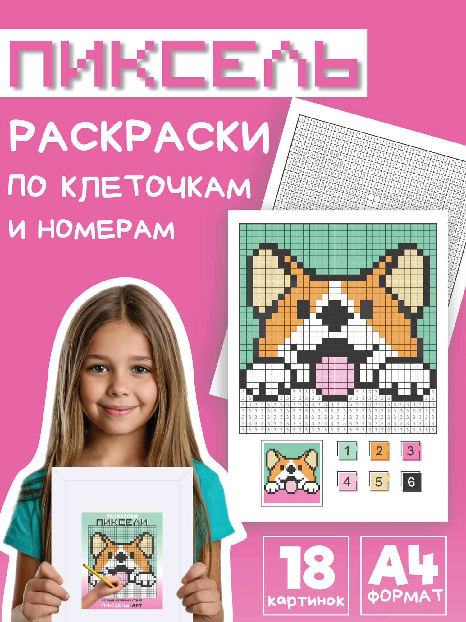 Раскраска пиксельная по клеточкам и номерам. Антистресс-раскраска "Животные". информация: