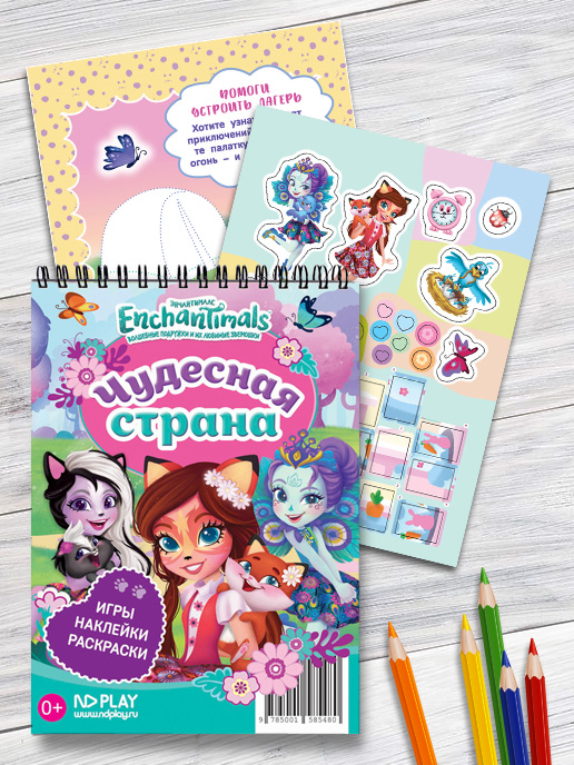 Занимательный блокнот с наклейками. Энчантималс. Чудесная страна информация: