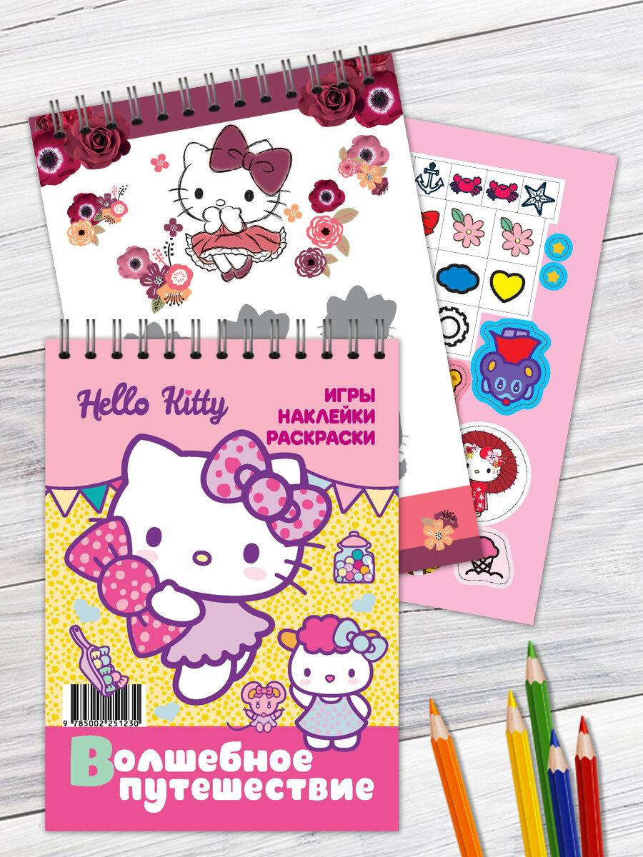 Занимательный блокнот с наклейками и заданиями. Хеллоу Китти. Волшебное путешествие. Загадки, наклейки, раскраски информация: