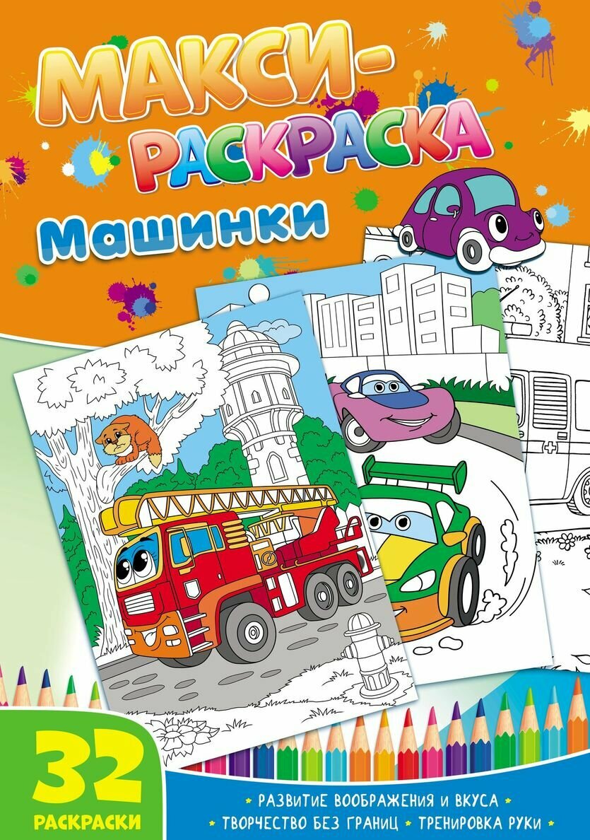 Макси-раскраски. Машинки. Развивающая книга, Книга с раскрасками информация:
