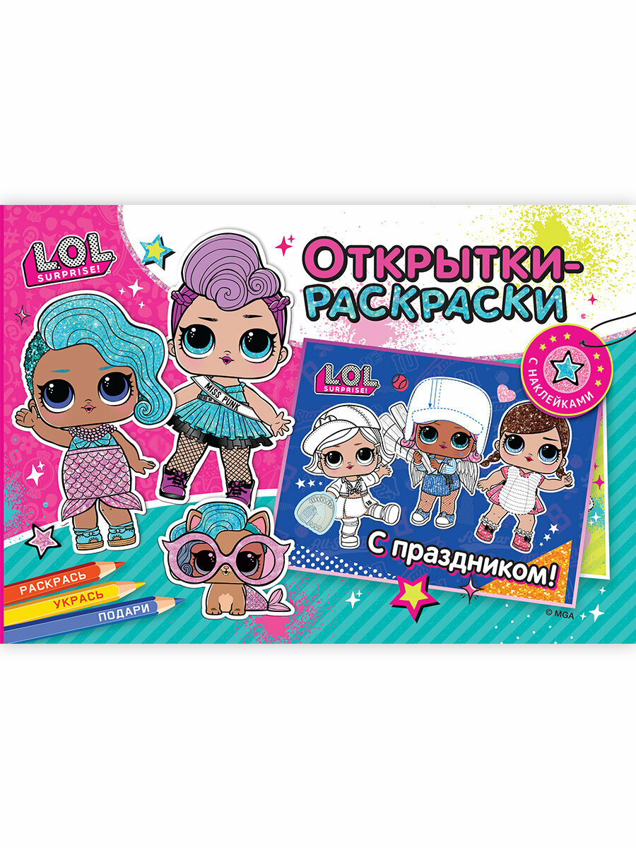 Подарок своими руками, Открытки-раскраски с наклейками. L.O.L. Яркий праздник информация: