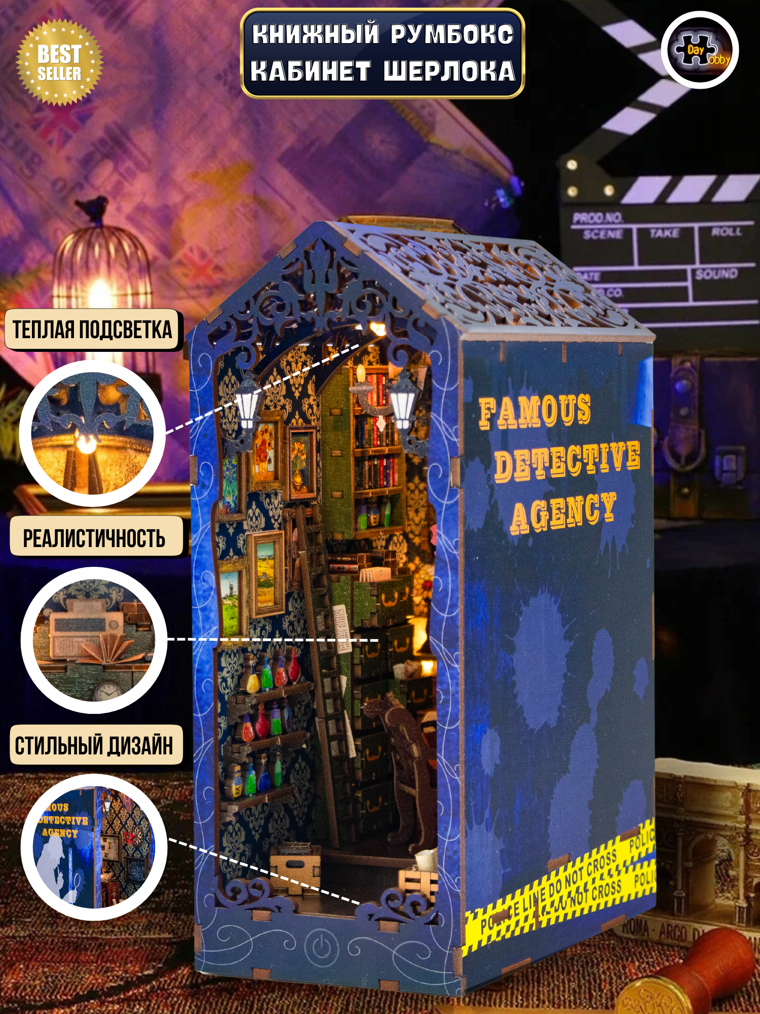 Отзывы на Румбокс Diy Mini House Hobby Day Книжный разделитель " Кабинет Шерлока Холмса" PC2414