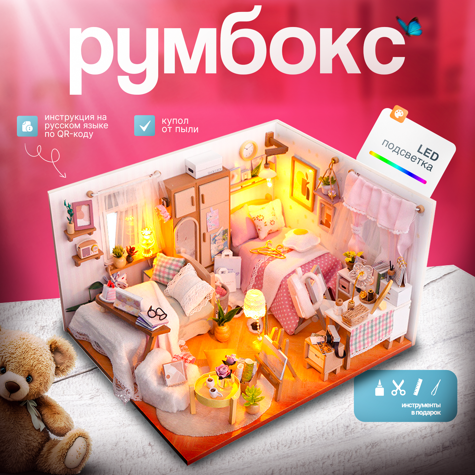10 цен на Румбокс "Комната девочки" от 5 лет, сборка, инструменты, подсветка, защитный купол