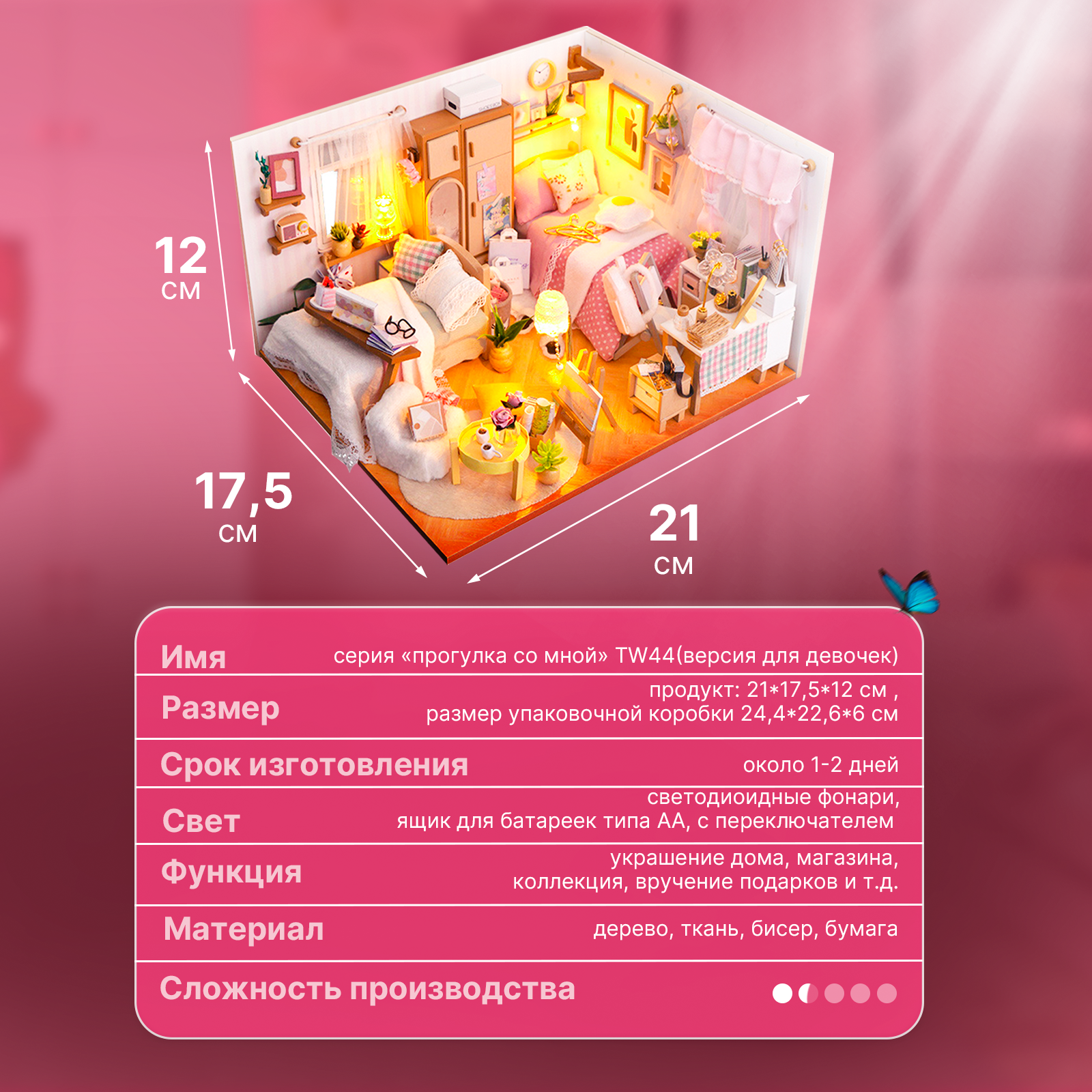 Румбокс "Комната девочки" от 5 лет, сборка, инструменты, подсветка, защитный купол информация:
