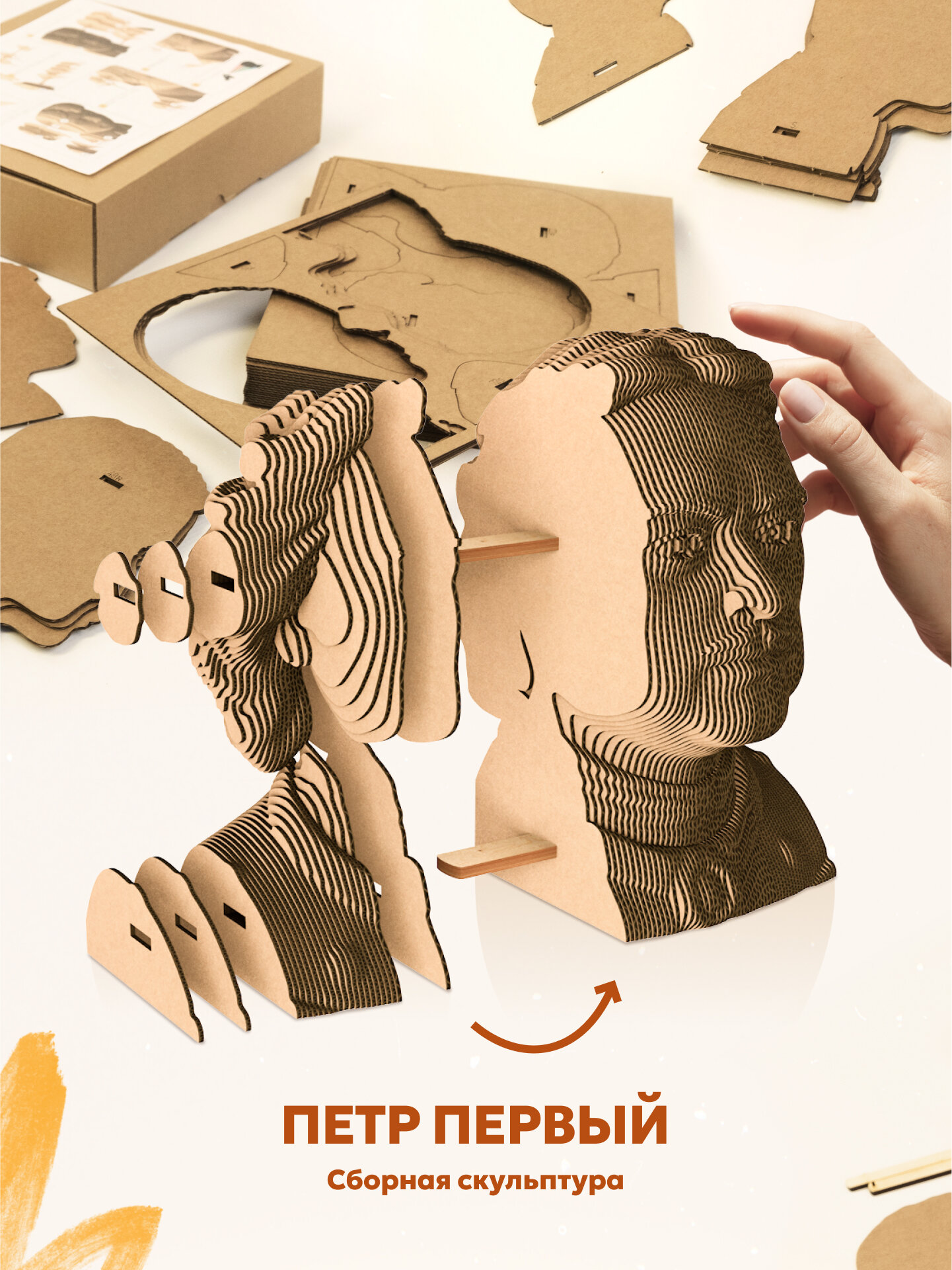 Сборная скульптура бюст Петр Первый 3д пазл из картона от 5CULT информация:
