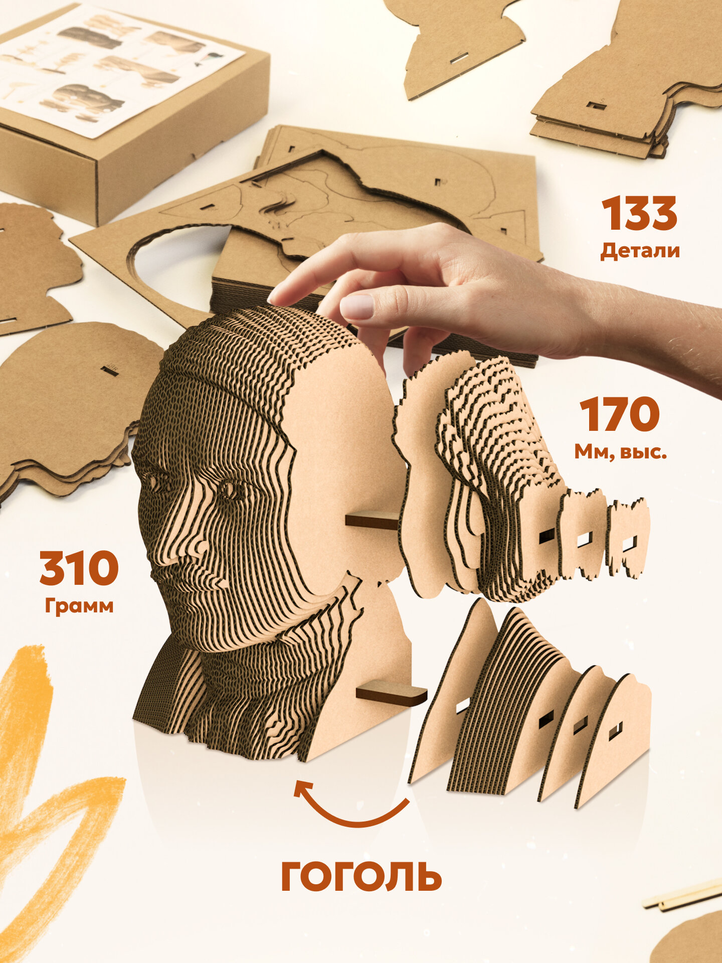 3д пазл из картона бюст Гоголь Николай картонный конструктор от 5CULT информация: