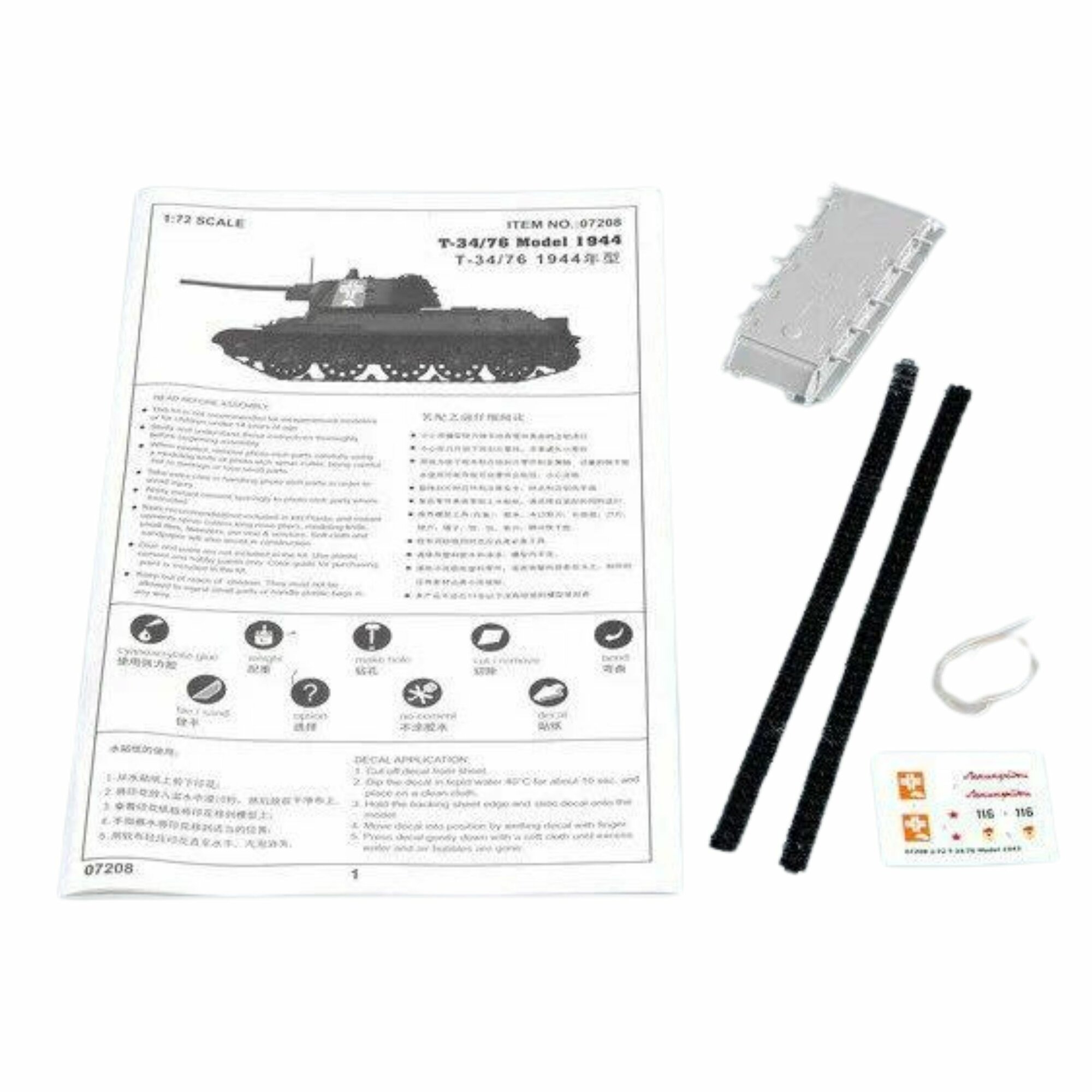 Модель сборная Т-34 советский средний танк времен Второй мировой войны и послевоенного периода 1/72 Trumpeter 07208 Soviet T-34/76 MOD.1943 информация: