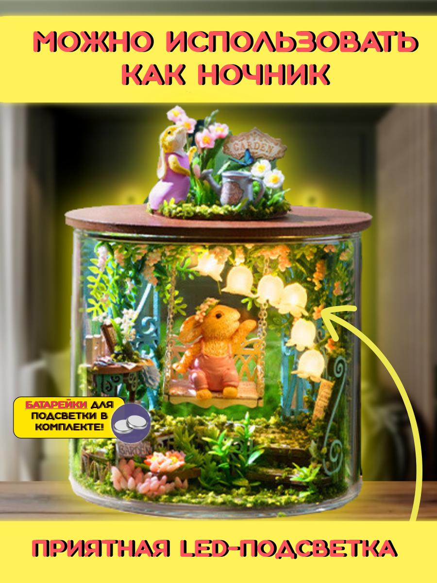 10 цен на Мини румбокс оранжерея, интерьерный конструктор, "Зайчик на качелях" своими руками